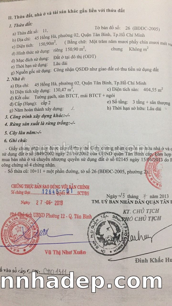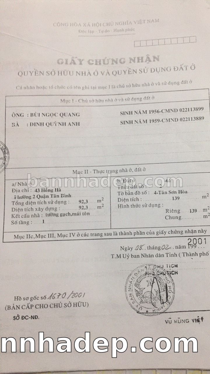 Bán nhà 43-45 Hồng Hà phường 02 quận Tân Bình