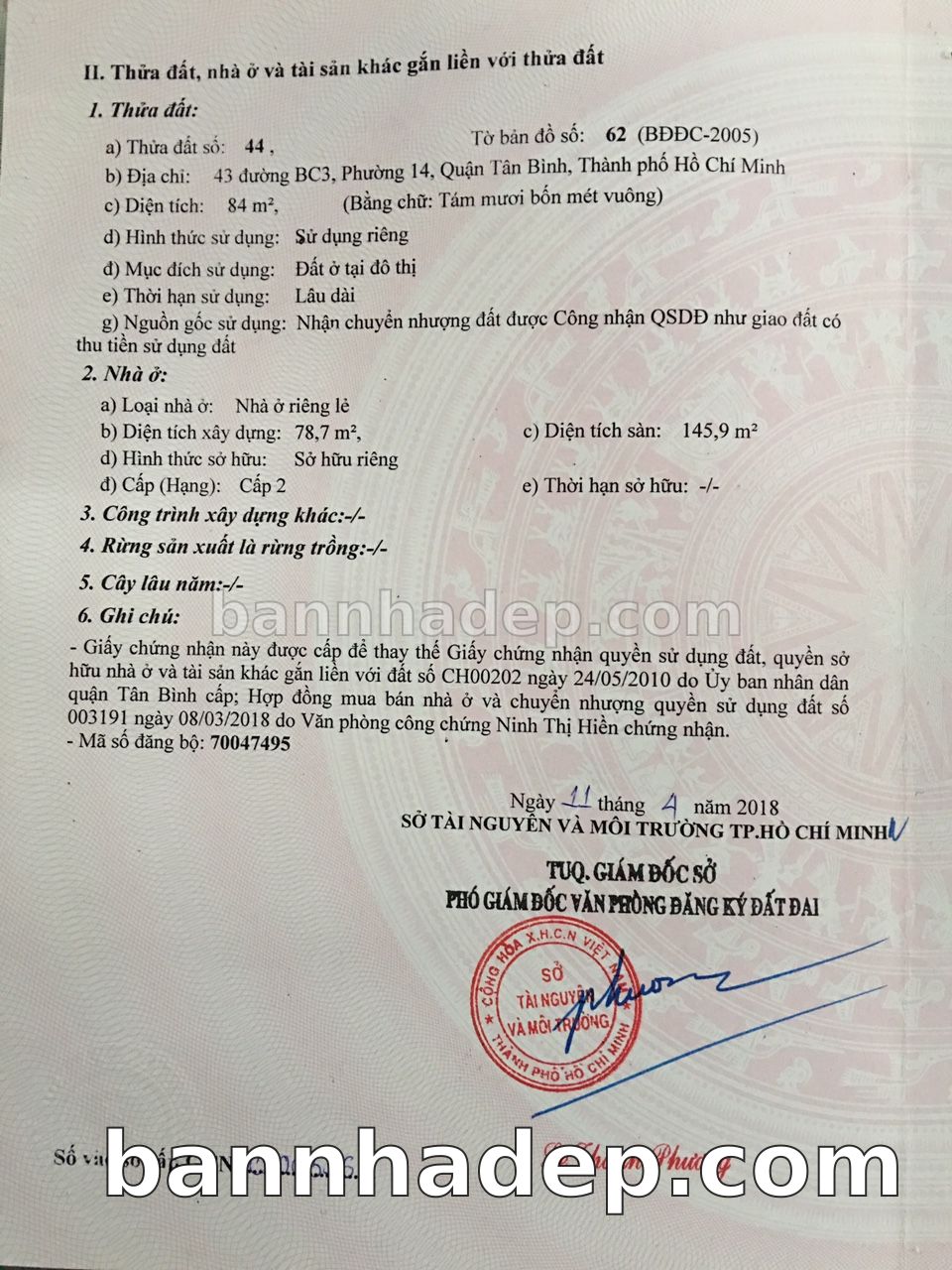 BÁN NHÀ Mặt tiền Số 43 đường BC3 phường 01 quận Tân Bình TP. Hồ Chí Minh – GẦN CÔNG VIÊN GIẢI TRÍ – GIÁ TỐT Cần bán gấp nhà Mặt tiền tại Số 43 đường BC3 phường 01 quận Tân Bình TP. Hồ Chí Minh – tiềm năng kinh doanh cao. Thông tin chi tiết: • Địa chỉ: Số 43 đường BC3 phường 01 quận Tân Bình TP. Hồ Chí Minh • Diện tích: như trong sổ, không gian lý tưởng • Vị trí: Mặt tiền đường đường BC3, gần trung tâm thương mại lớn, khu vực sầm uất, tiềm năng kinh doanh cao • Pháp lý: Sổ hồng riêng, không tranh chấp, sẵn sàng giao dịch • Giá bán: Thoả Thuận (còn thương lượng với khách thiện chí) Lợi thế đặc biệt: • Vị trí trung tâm Quận Tân Bình • Giao thông thuận tiện, kết nối các quận trung tâm • Phù hợp kinh doanh dài hạn, ổn định • Khu vực sầm uất, tiềm năng kinh doanh tốt