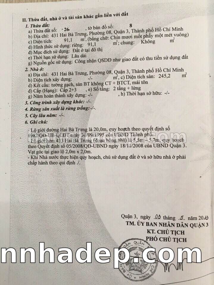 BÁN NHÀ Mặt tiền Số 431 Hai Bà Trưng phường 08 quận 3 TP. Hồ Chí Minh – GẦN CÔNG VIÊN GIẢI TRÍ – GIÁ TỐT Cần bán gấp nhà Mặt tiền tại Số 431 Hai Bà Trưng phường 08 quận 3 TP. Hồ Chí Minh – tiềm năng kinh doanh cao. Thông tin chi tiết: • Địa chỉ: Số 431 Hai Bà Trưng phường 08 quận 3 TP. Hồ Chí Minh • Diện tích: như trong sổ, không gian lý tưởng • Vị trí: Mặt tiền đường Hai Bà Trưng, gần trung tâm thương mại lớn, khu vực sầm uất, tiềm năng kinh doanh cao • Pháp lý: Sổ hồng riêng, không tranh chấp, sẵn sàng giao dịch • Giá bán: Thoả Thuận (còn thương lượng với khách thiện chí) Lợi thế đặc biệt: • Vị trí trung tâm Quận 3 • Giao thông thuận tiện, kết nối các quận trung tâm • Phù hợp kinh doanh dài hạn, ổn định • Khu vực sầm uất, tiềm năng kinh doanh tốt