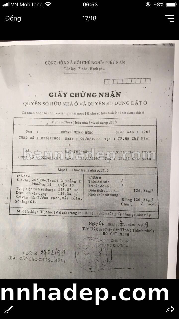 Bán nhà 79CT Tam Đảo phường 01 quận 10