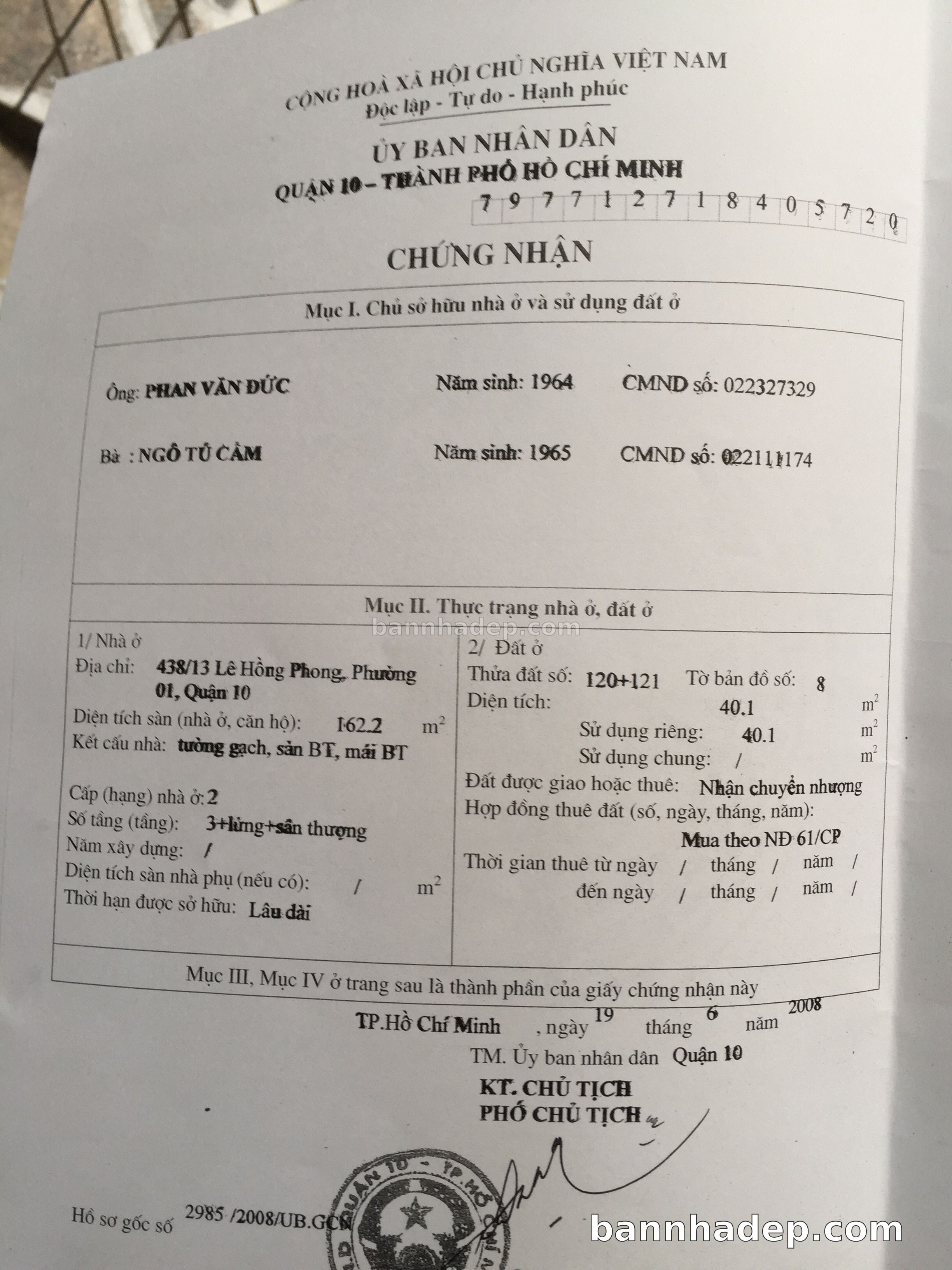Bán nhà 723 Lê Hồng Phong phường 01 quận 10