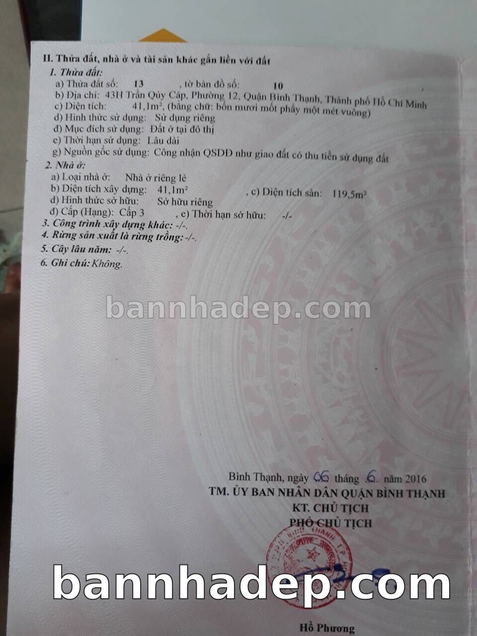 Bán nhà Thửa đất số 410, tờ bản đồ số 32 đường trục 30 phường 01 quận Bình Thạnh