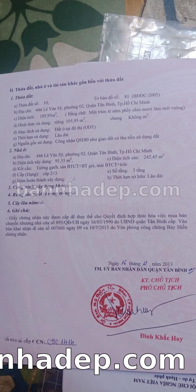 Bán nhà 446 Lê Văn Sỹ phường 02 quận Tân Bình