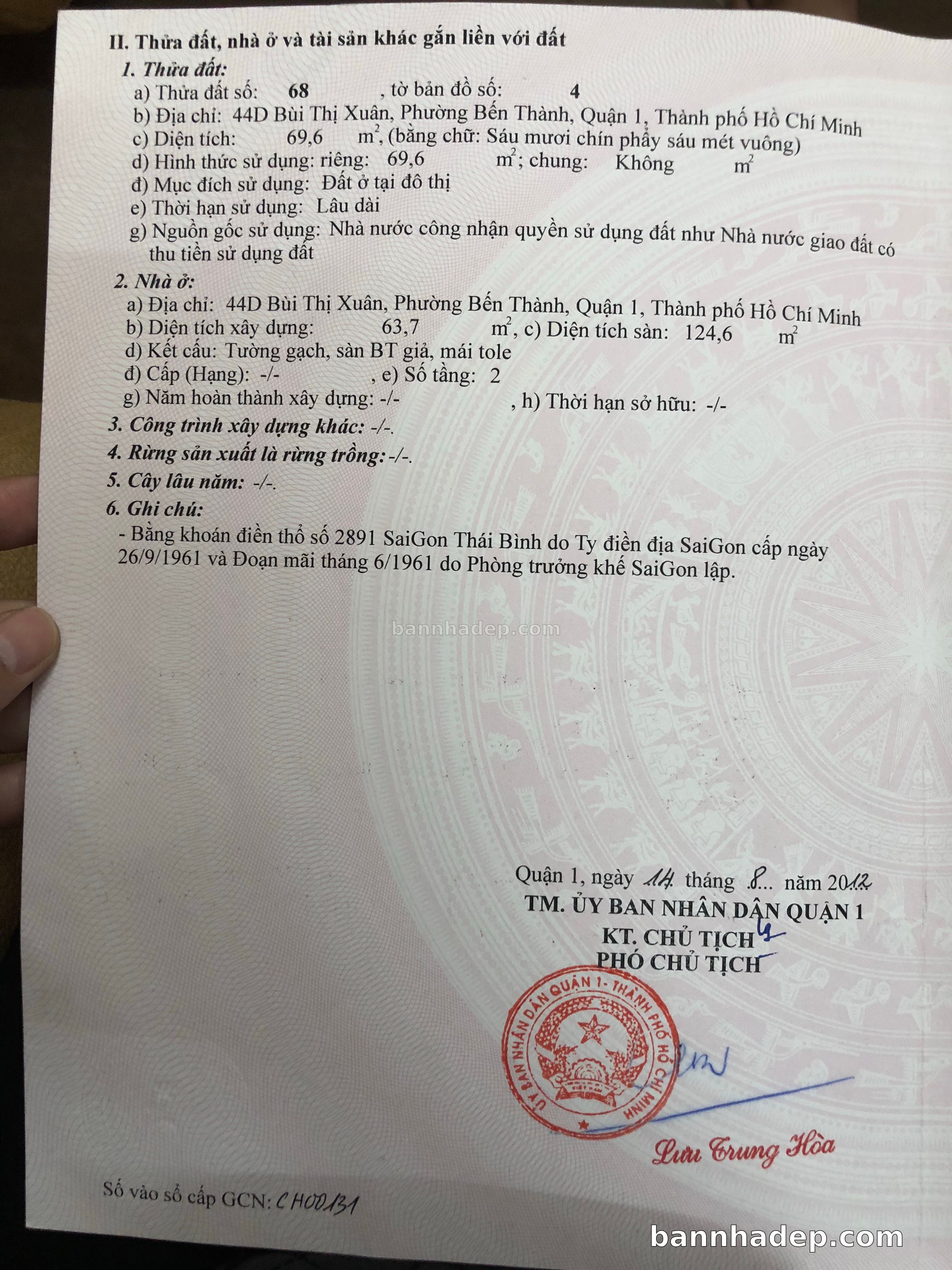 BÁN NHÀ Đường hẻm Số 44D Bùi Thị Xuân phường Bến Thành quận 1 TP. Hồ Chí Minh – GẦN CÔNG VIÊN GIẢI TRÍ – GIÁ TỐT Cần bán gấp nhà Đường hẻm tại Số 44D Bùi Thị Xuân phường Bến Thành quận 1 TP. Hồ Chí Minh – tiềm năng kinh doanh cao. Thông tin chi tiết: • Địa chỉ: Số 44D Bùi Thị Xuân phường Bến Thành quận 1 TP. Hồ Chí Minh • Diện tích: như trong sổ, không gian lý tưởng • Vị trí: Đường hẻm đường Bùi Thị Xuân, gần trung tâm thương mại lớn, khu vực sầm uất, tiềm năng kinh doanh cao • Pháp lý: Sổ hồng riêng, không tranh chấp, sẵn sàng giao dịch • Giá bán: Thoả Thuận (còn thương lượng với khách thiện chí) Lợi thế đặc biệt: • Vị trí trung tâm Quận 1 • Giao thông thuận tiện, kết nối các quận trung tâm • Phù hợp kinh doanh dài hạn, ổn định • Khu vực sầm uất, tiềm năng kinh doanh tốt