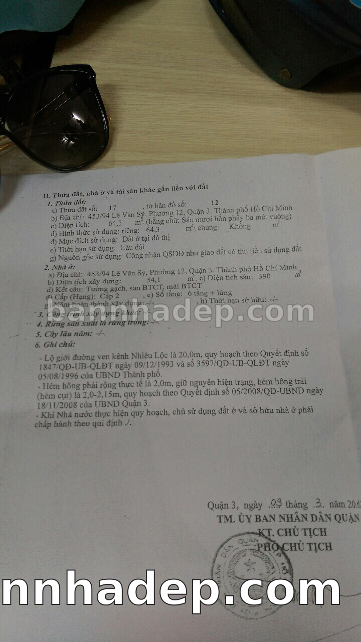 Bán nhà 453/94 Lê Văn Sỹ phường 01 quận 3