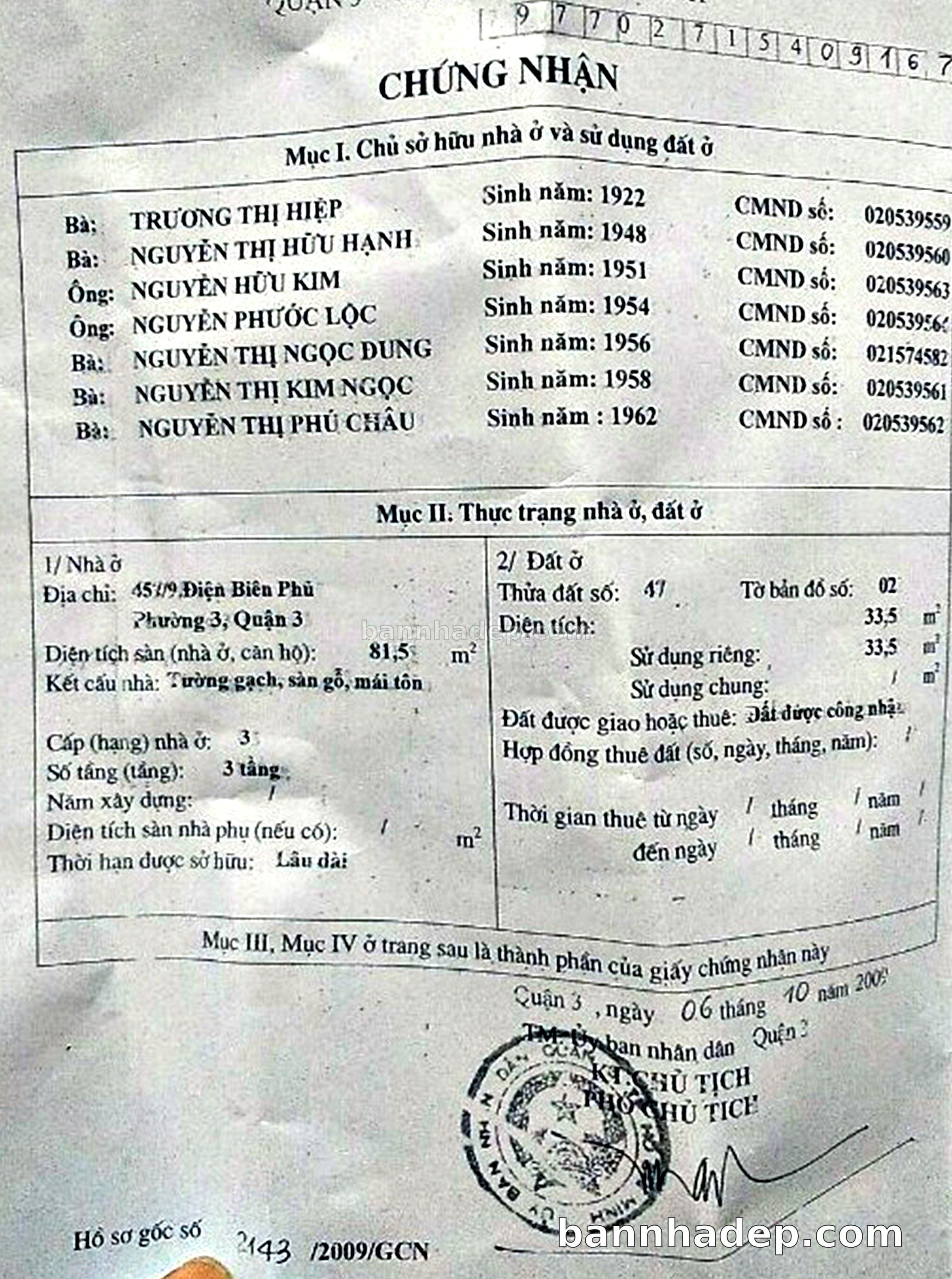 Bán nhà 457/9 Điện Biên Phủ phường 03 quận 3
