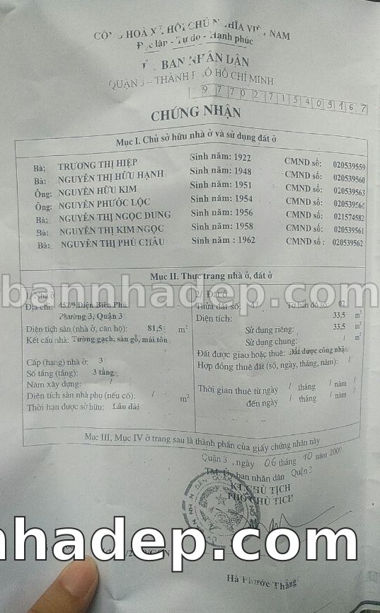 Bán nhà 89 Bàn Cờ phường 03 quận 3