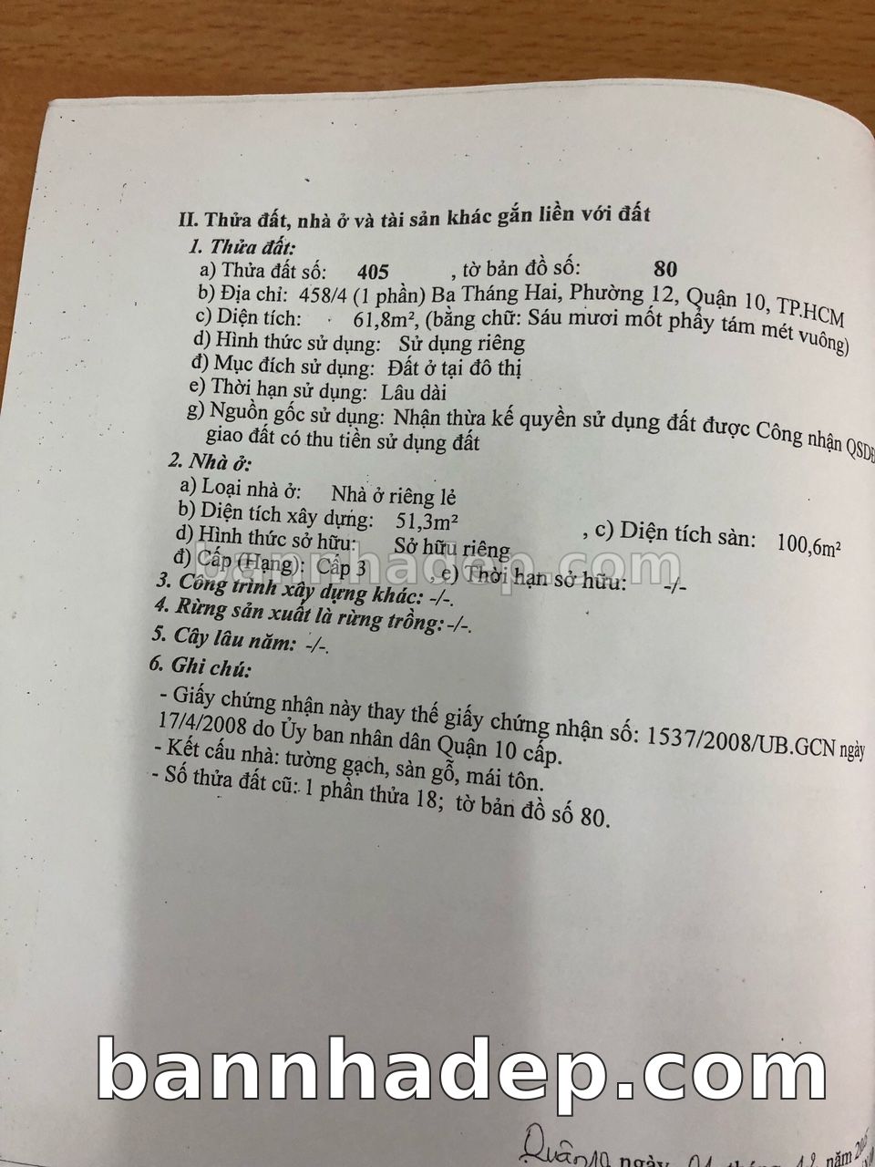 Bán nhà 458/4 Đường 3 tháng 2 phường 01 quận 10