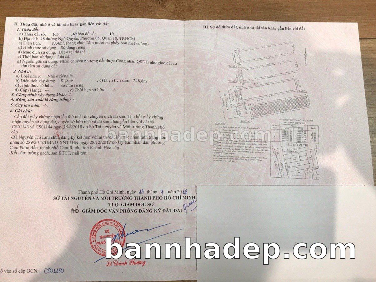 BÁN NHÀ MẶT TIỀN Số 46-48 Ngô Quyền Phường 5 Quận 10 TP. Hồ Chí Minh – GẦN BỆNH VIỆN – GIÁ TỐT 115 TỶ Cần bán gấp nhà mặt tiền tại Số 46-48 Ngô Quyền Phường 5 Quận 10 TP. Hồ Chí Minh – tiềm năng kinh doanh cao. Thông tin chi tiết: • Địa chỉ: Số 46-48 Ngô Quyền Phường 5 Quận 10 TP. Hồ Chí Minh • Diện tích: 8.0m x 21.0m, phù hợp kinh doanh • Vị trí: Mặt tiền đường Ngô Quyền, gần trường học quốc tế, khu vực sầm uất, tiềm năng kinh doanh cao • Pháp lý: Sổ hồng riêng, quy hoạch rõ ràng, sẵn sàng sang tên • Giá bán: 115 Tỷ (giá tốt nhất khu vực, có thể thương lượng) Điểm nổi bật: • Phù hợp kinh doanh đa dạng ngành nghề • Mặt tiền rộng, giá trị khai thác thương mại cao • Vị trí trung tâm Quận 10, thuận tiện kết nối Quận 3, 5, 10 • Khu vực phát triển, tiềm năng tăng trưởng cao