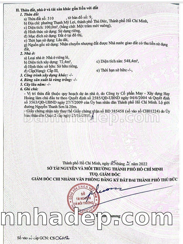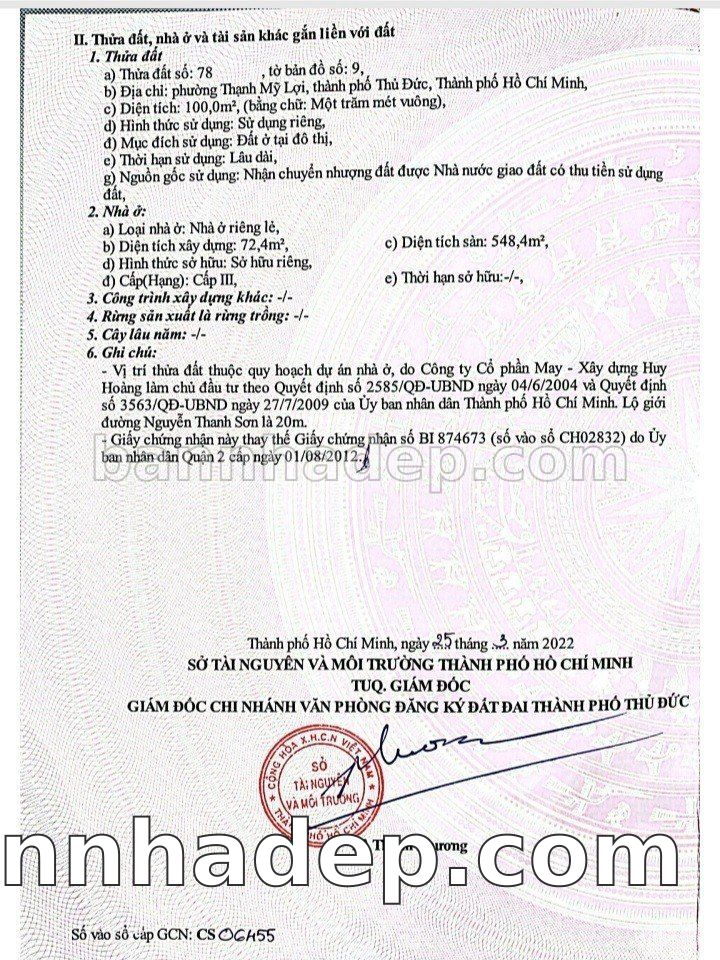Bán nhà Thửa: 826Tờ: 19 Số 58 Thạnh Mỹ Lợi Thành phố Thủ Đức