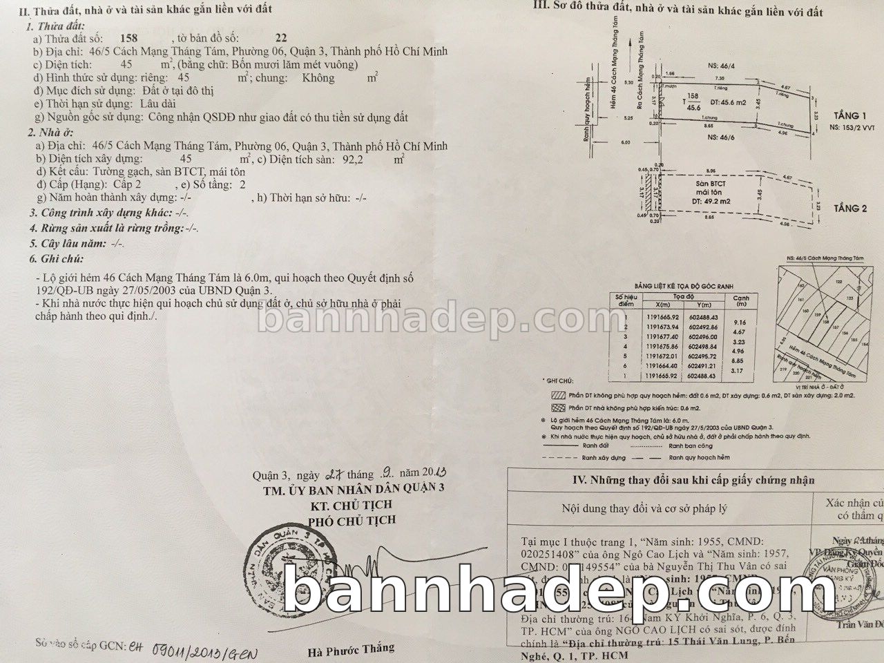 BÁN NHÀ Đường hẻm Số 46/5 Cách Mạng Tháng 8 phường 06 quận 3 TP. Hồ Chí Minh – GẦN CÔNG VIÊN GIẢI TRÍ – GIÁ TỐT Cần bán gấp nhà Đường hẻm tại Số 46/5 Cách Mạng Tháng 8 phường 06 quận 3 TP. Hồ Chí Minh – tiềm năng kinh doanh cao. Thông tin chi tiết: • Địa chỉ: Số 46/5 Cách Mạng Tháng 8 phường 06 quận 3 TP. Hồ Chí Minh • Diện tích: như trong sổ, không gian lý tưởng • Vị trí: Đường hẻm đường Cách Mạng Tháng 8, gần trung tâm thương mại lớn, khu vực sầm uất, tiềm năng kinh doanh cao • Pháp lý: Sổ hồng riêng, không tranh chấp, sẵn sàng giao dịch • Giá bán: Thoả Thuận (còn thương lượng với khách thiện chí) Lợi thế đặc biệt: • Vị trí trung tâm Quận 3 • Giao thông thuận tiện, kết nối các quận trung tâm • Phù hợp kinh doanh dài hạn, ổn định • Khu vực sầm uất, tiềm năng kinh doanh tốt