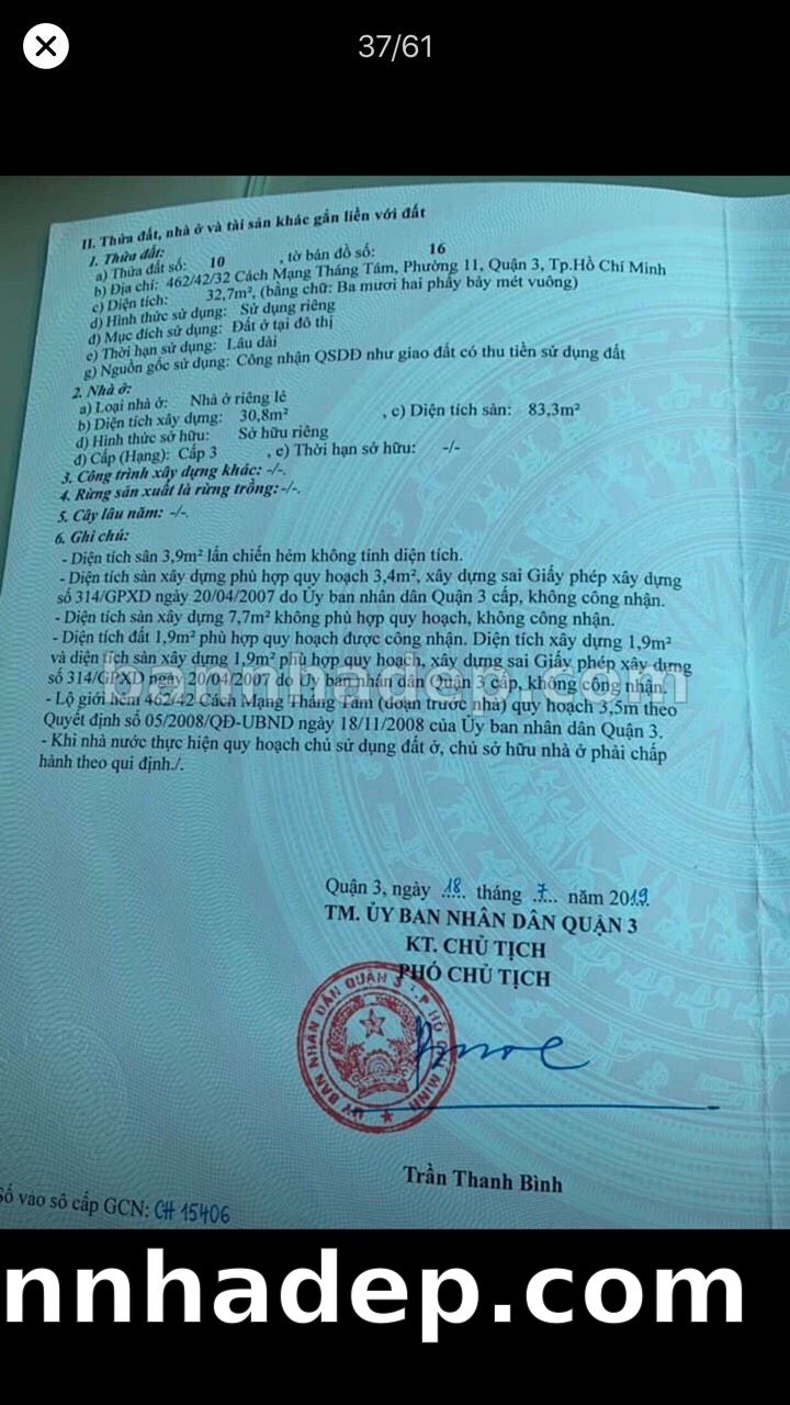 Bán nhà 462/42/32 Cách Mạng Tháng Tám phường 01 quận 3
