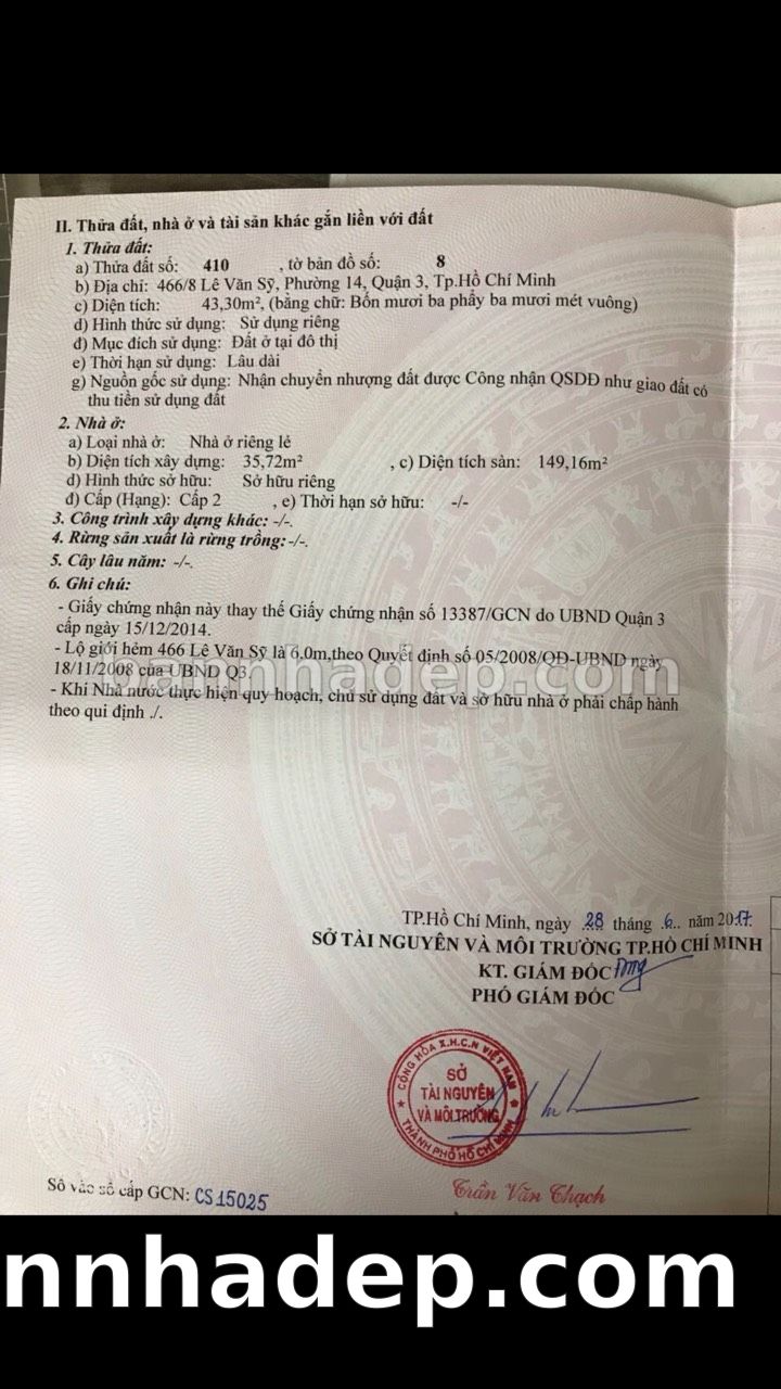Bán nhà 466/8 Lê Văn Sỹ phường 01 quận 3