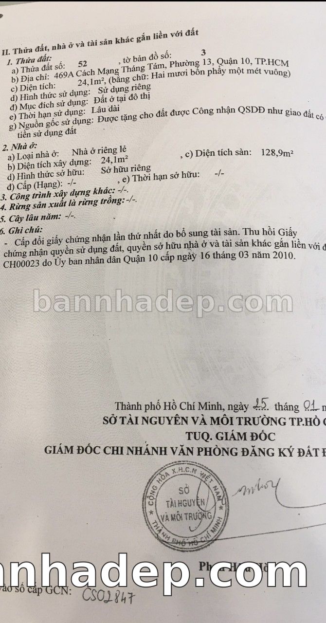 Bán nhà 469A Cách Mạng Tháng Tám phường 13 quận 10
