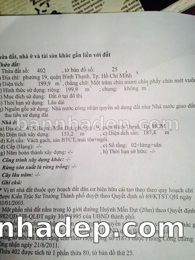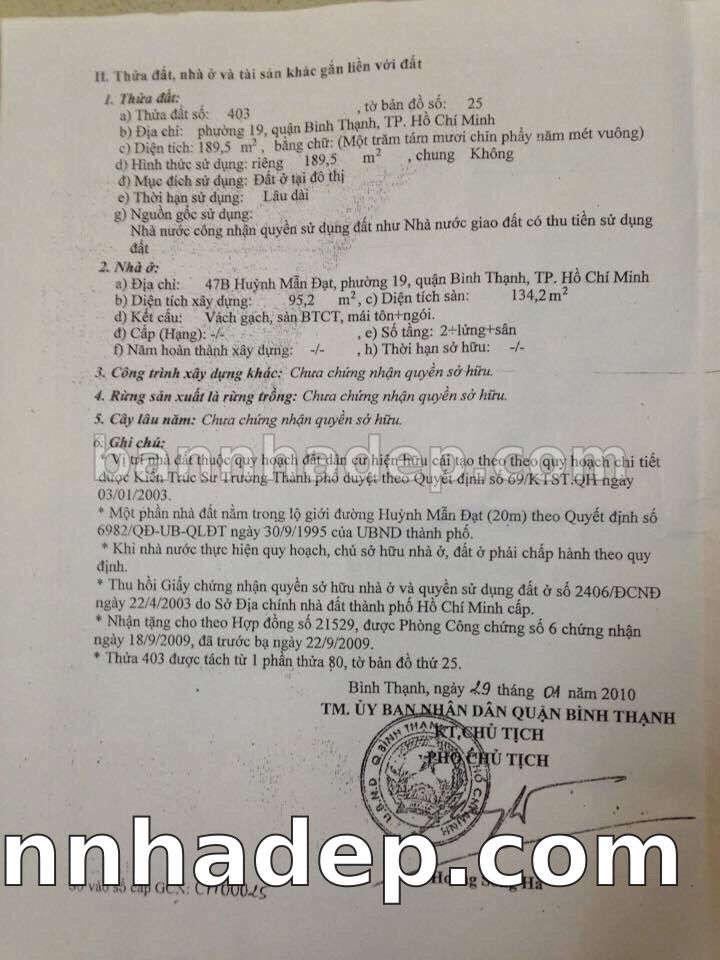 BÁN NHÀ Mặt tiền Số 47-47A-47B Huỳnh Mẫn Đạt phường 01 quận Bình Thạnh TP. Hồ Chí Minh – GẦN CÔNG VIÊN GIẢI TRÍ – GIÁ TỐT Cần bán gấp nhà Mặt tiền tại Số 47-47A-47B Huỳnh Mẫn Đạt phường 01 quận Bình Thạnh TP. Hồ Chí Minh – tiềm năng kinh doanh cao. Thông tin chi tiết: • Địa chỉ: Số 47-47A-47B Huỳnh Mẫn Đạt phường 01 quận Bình Thạnh TP. Hồ Chí Minh • Diện tích: như trong sổ, không gian lý tưởng • Vị trí: Mặt tiền đường Huỳnh Mẫn Đạt, gần trung tâm thương mại lớn, khu vực sầm uất, tiềm năng kinh doanh cao • Pháp lý: Sổ hồng riêng, không tranh chấp, sẵn sàng giao dịch • Giá bán: Thoả Thuận (còn thương lượng với khách thiện chí) Lợi thế đặc biệt: • Vị trí trung tâm Quận Bình Thạnh • Giao thông thuận tiện, kết nối các quận trung tâm • Phù hợp kinh doanh dài hạn, ổn định • Khu vực sầm uất, tiềm năng kinh doanh tốt