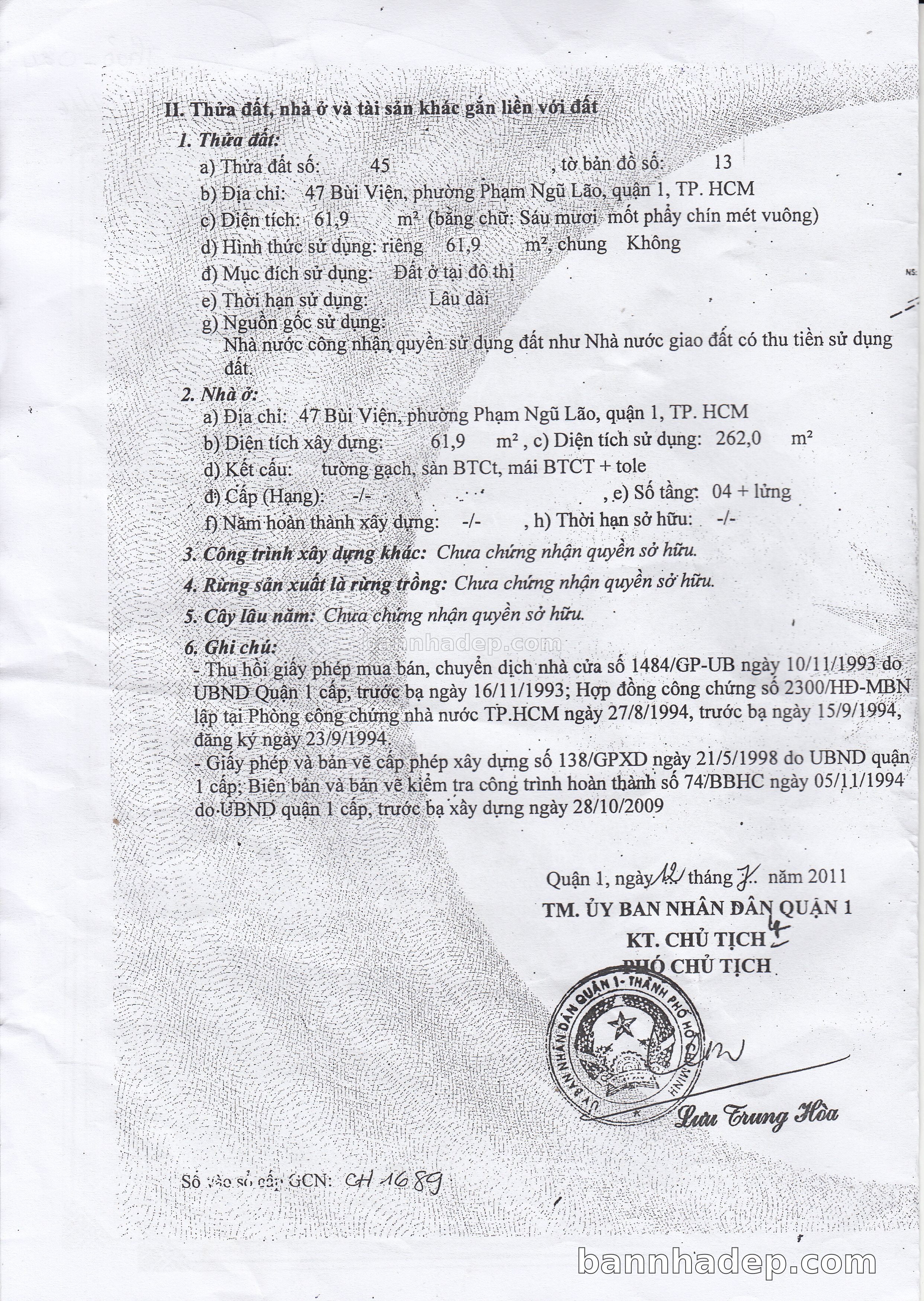 BÁN NHÀ Mặt tiền Số 47 Bùi Viện phường Phạm Ngũ Lão quận 1 TP. Hồ Chí Minh – GẦN CÔNG VIÊN GIẢI TRÍ – GIÁ TỐT Cần bán gấp nhà Mặt tiền tại Số 47 Bùi Viện phường Phạm Ngũ Lão quận 1 TP. Hồ Chí Minh – tiềm năng kinh doanh cao. Thông tin chi tiết: • Địa chỉ: Số 47 Bùi Viện phường Phạm Ngũ Lão quận 1 TP. Hồ Chí Minh • Diện tích: như trong sổ, không gian lý tưởng • Vị trí: Mặt tiền đường Bùi Viện, gần trung tâm thương mại lớn, khu vực sầm uất, tiềm năng kinh doanh cao • Pháp lý: Sổ hồng riêng, không tranh chấp, sẵn sàng giao dịch • Giá bán: Thoả Thuận (còn thương lượng với khách thiện chí) Lợi thế đặc biệt: • Vị trí trung tâm Quận 1 • Giao thông thuận tiện, kết nối các quận trung tâm • Phù hợp kinh doanh dài hạn, ổn định • Khu vực sầm uất, tiềm năng kinh doanh tốt