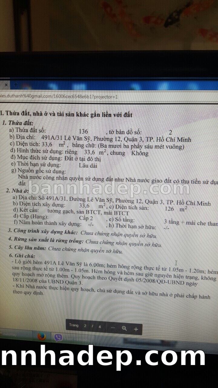 Bán nhà 491A/31 Lê Văn Sỹ phường 01 quận 3