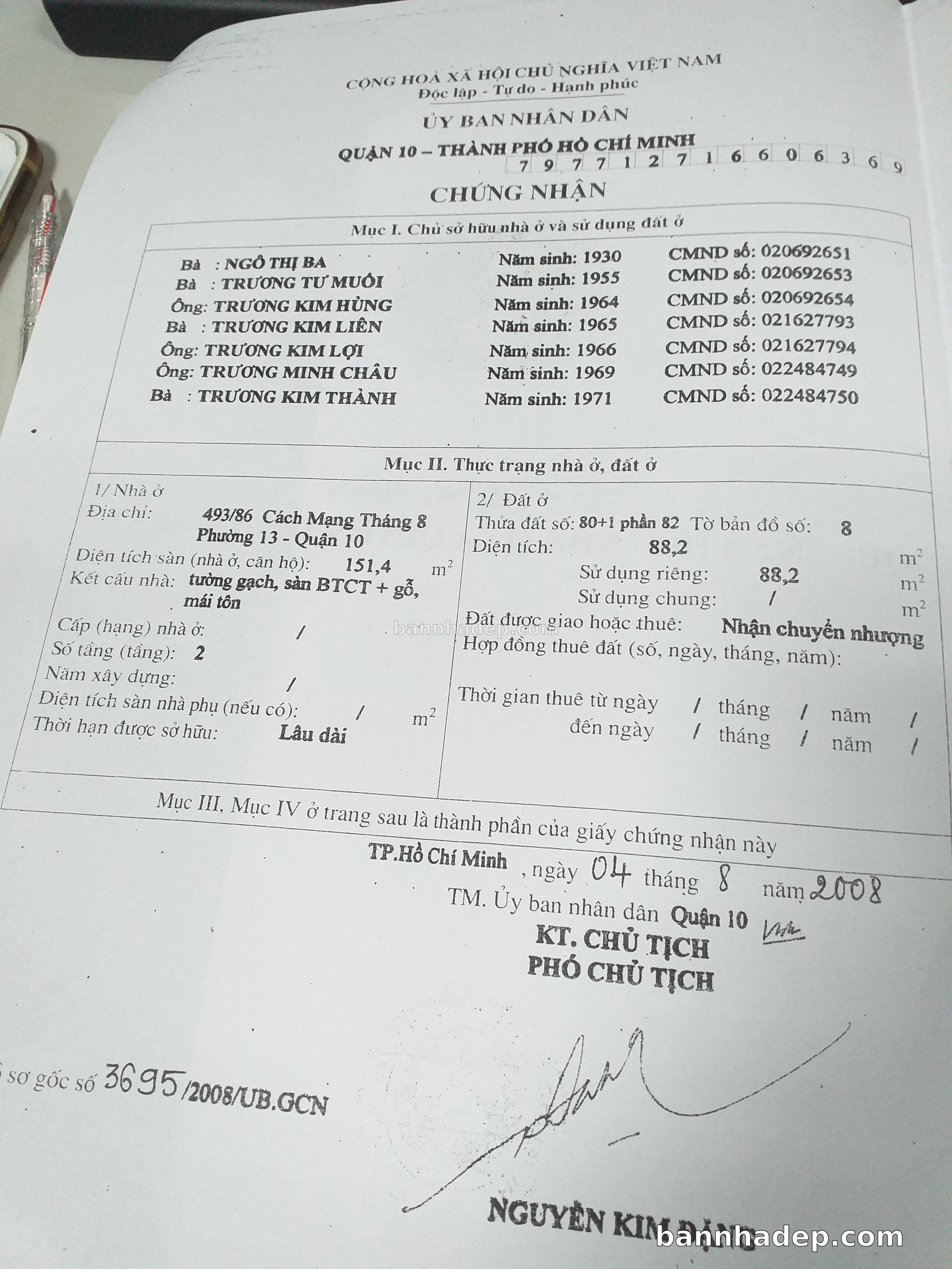 Bán nhà 493/86 Cách mạng tháng 8 phường 01 quận 10