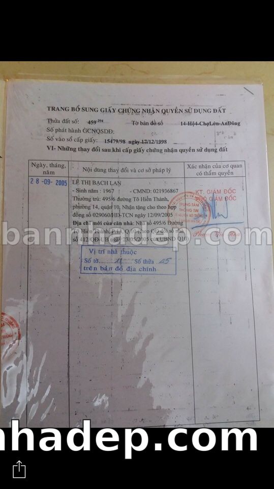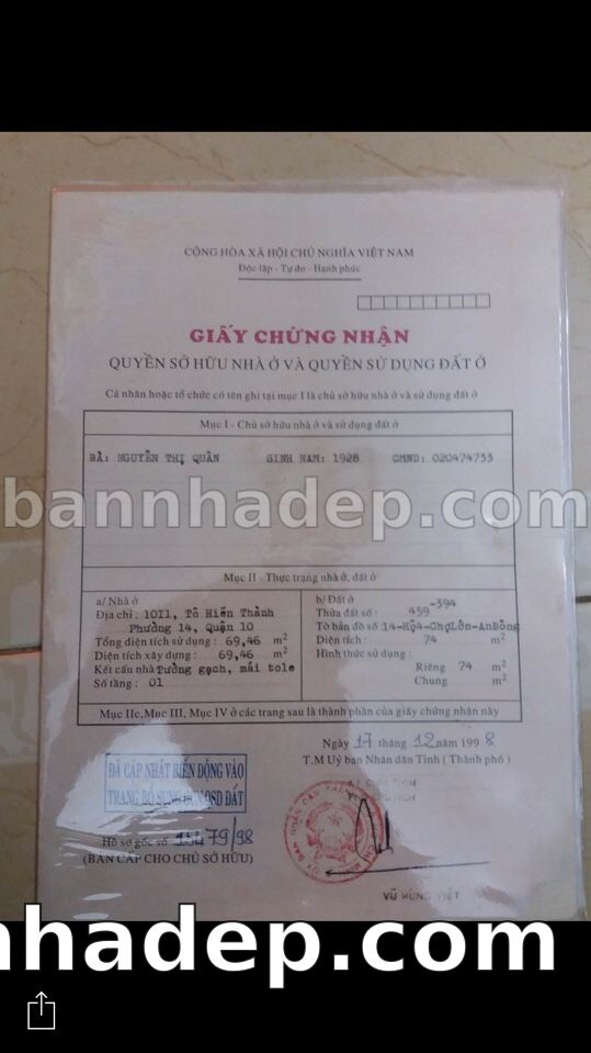 Bán nhà 495/6 (số cũ 10I1) Tô Hiến Thành phường 01 quận 10