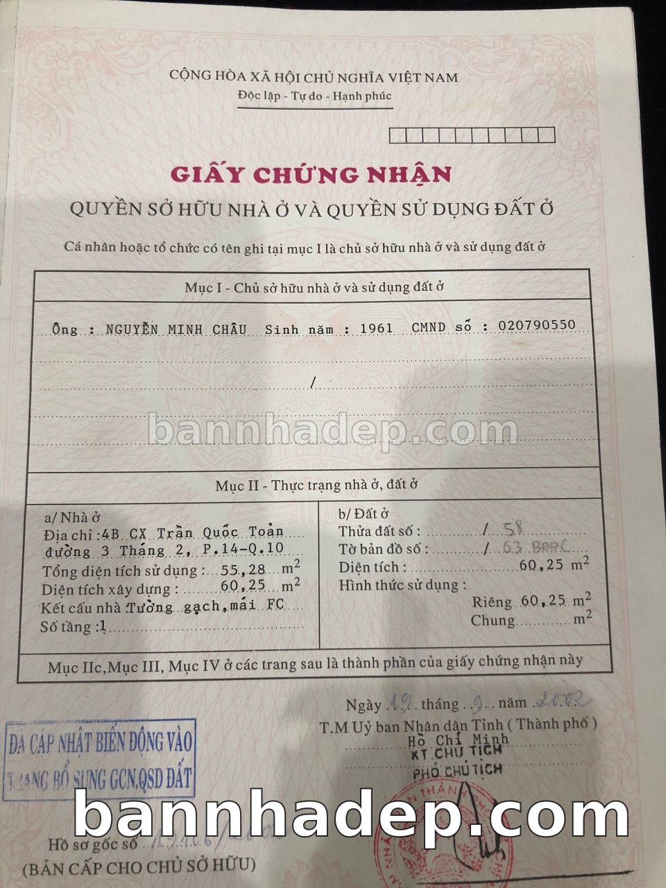 Bán nhà 79CT Tam Đảo phường 01 quận 10