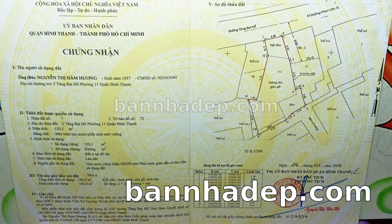 BÁN NHÀ Mặt tiền Số 5 Tăng Bạt Hổ phường 01 quận Bình Thạnh TP. Hồ Chí Minh – GẦN CÔNG VIÊN GIẢI TRÍ – GIÁ TỐT Cần bán gấp nhà Mặt tiền tại Số 5 Tăng Bạt Hổ phường 01 quận Bình Thạnh TP. Hồ Chí Minh – tiềm năng kinh doanh cao. Thông tin chi tiết: • Địa chỉ: Số 5 Tăng Bạt Hổ phường 01 quận Bình Thạnh TP. Hồ Chí Minh • Diện tích: như trong sổ, không gian lý tưởng • Vị trí: Mặt tiền đường Tăng Bạt Hổ, gần trung tâm thương mại lớn, khu vực sầm uất, tiềm năng kinh doanh cao • Pháp lý: Sổ hồng riêng, không tranh chấp, sẵn sàng giao dịch • Giá bán: Thoả Thuận (còn thương lượng với khách thiện chí) Lợi thế đặc biệt: • Vị trí trung tâm Quận Bình Thạnh • Giao thông thuận tiện, kết nối các quận trung tâm • Phù hợp kinh doanh dài hạn, ổn định • Khu vực sầm uất, tiềm năng kinh doanh tốt