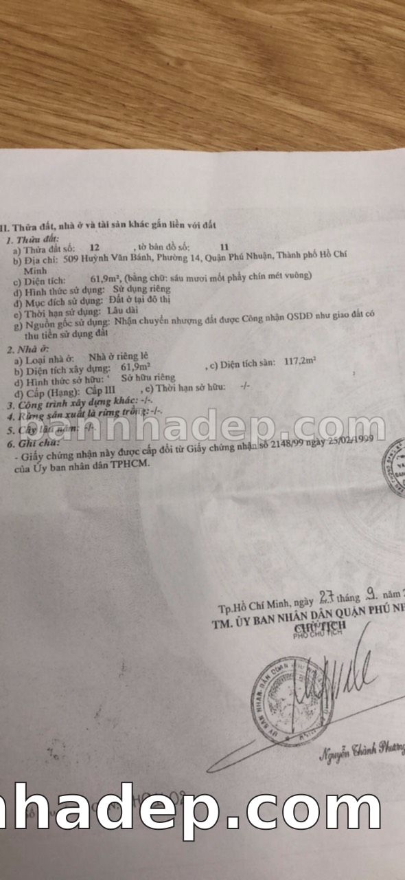 BÁN NHÀ Mặt tiền Số 509 Huỳnh Văn Bánh phường 01 quận Phú Nhuận TP. Hồ Chí Minh – GẦN CÔNG VIÊN GIẢI TRÍ – GIÁ TỐT Cần bán gấp nhà Mặt tiền tại Số 509 Huỳnh Văn Bánh phường 01 quận Phú Nhuận TP. Hồ Chí Minh – tiềm năng kinh doanh cao. Thông tin chi tiết: • Địa chỉ: Số 509 Huỳnh Văn Bánh phường 01 quận Phú Nhuận TP. Hồ Chí Minh • Diện tích: như trong sổ, không gian lý tưởng • Vị trí: Mặt tiền đường Huỳnh Văn Bánh, gần trung tâm thương mại lớn, khu vực sầm uất, tiềm năng kinh doanh cao • Pháp lý: Sổ hồng riêng, không tranh chấp, sẵn sàng giao dịch • Giá bán: Thoả Thuận (còn thương lượng với khách thiện chí) Lợi thế đặc biệt: • Vị trí trung tâm Quận Phú Nhuận • Giao thông thuận tiện, kết nối các quận trung tâm • Phù hợp kinh doanh dài hạn, ổn định • Khu vực sầm uất, tiềm năng kinh doanh tốt