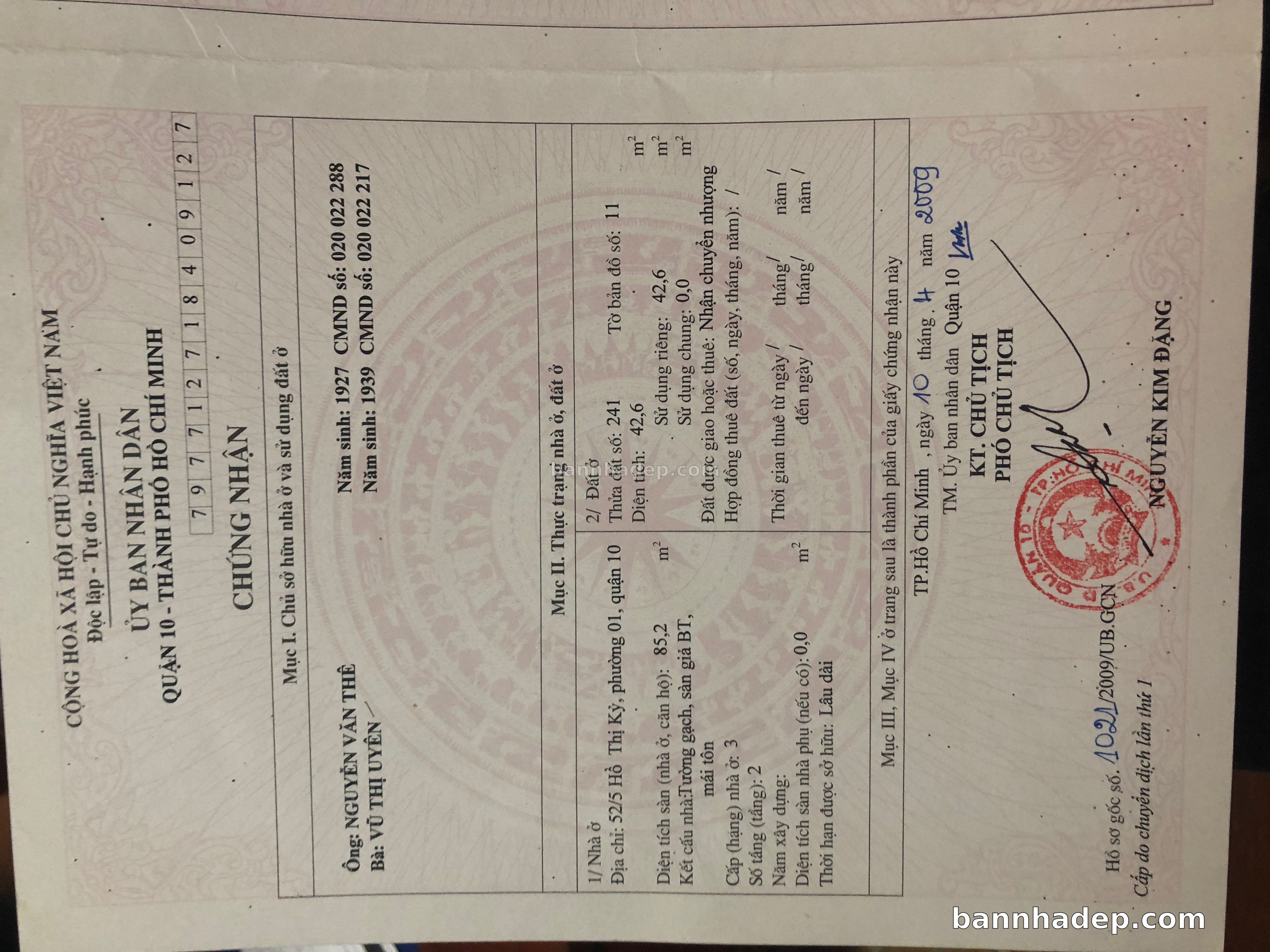 Bán nhà 52/5 Hồ Thị Kỷ phường 01 quận 10