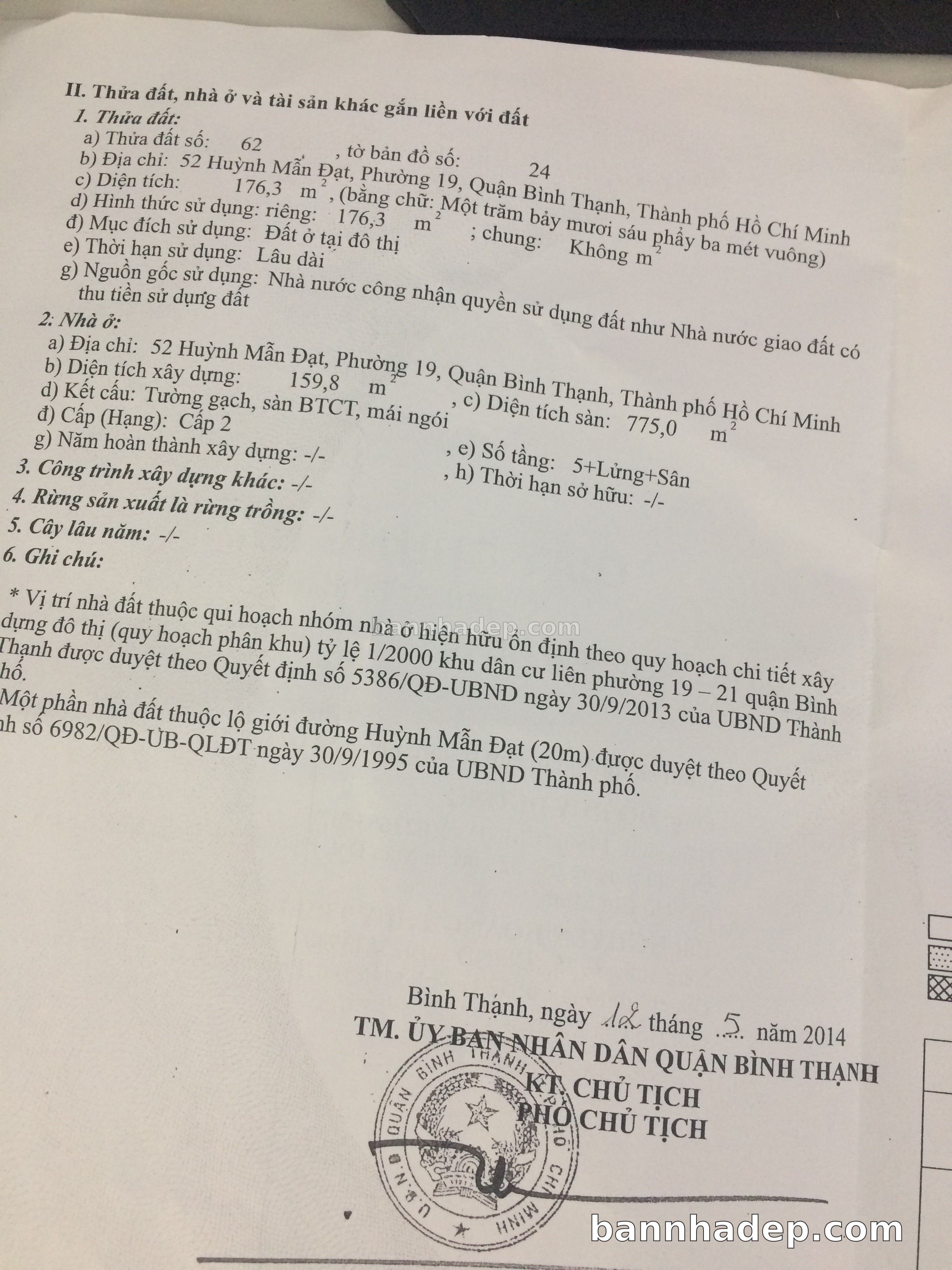 BÁN NHÀ Mặt tiền Số 52 Huỳnh Mẫn Đạt phường 01 quận Bình Thạnh TP. Hồ Chí Minh – GẦN CÔNG VIÊN GIẢI TRÍ – GIÁ TỐT Cần bán gấp nhà Mặt tiền tại Số 52 Huỳnh Mẫn Đạt phường 01 quận Bình Thạnh TP. Hồ Chí Minh – tiềm năng kinh doanh cao. Thông tin chi tiết: • Địa chỉ: Số 52 Huỳnh Mẫn Đạt phường 01 quận Bình Thạnh TP. Hồ Chí Minh • Diện tích: như trong sổ, không gian lý tưởng • Vị trí: Mặt tiền đường Huỳnh Mẫn Đạt, gần trung tâm thương mại lớn, khu vực sầm uất, tiềm năng kinh doanh cao • Pháp lý: Sổ hồng riêng, không tranh chấp, sẵn sàng giao dịch • Giá bán: Thoả Thuận (còn thương lượng với khách thiện chí) Lợi thế đặc biệt: • Vị trí trung tâm Quận Bình Thạnh • Giao thông thuận tiện, kết nối các quận trung tâm • Phù hợp kinh doanh dài hạn, ổn định • Khu vực sầm uất, tiềm năng kinh doanh tốt