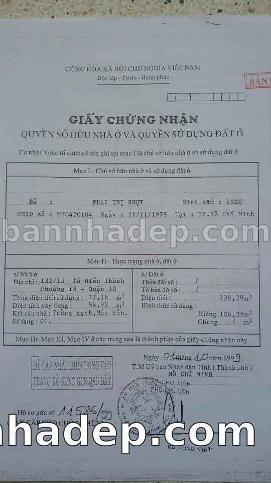 Bán nhà SS8 – SS9 Hồng Lĩnh – CX Bắc Hải phường 01 quận 10