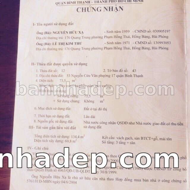 Bán nhà 53 Nguyễn Cửu Vân phường 01 quận Bình Thạnh
