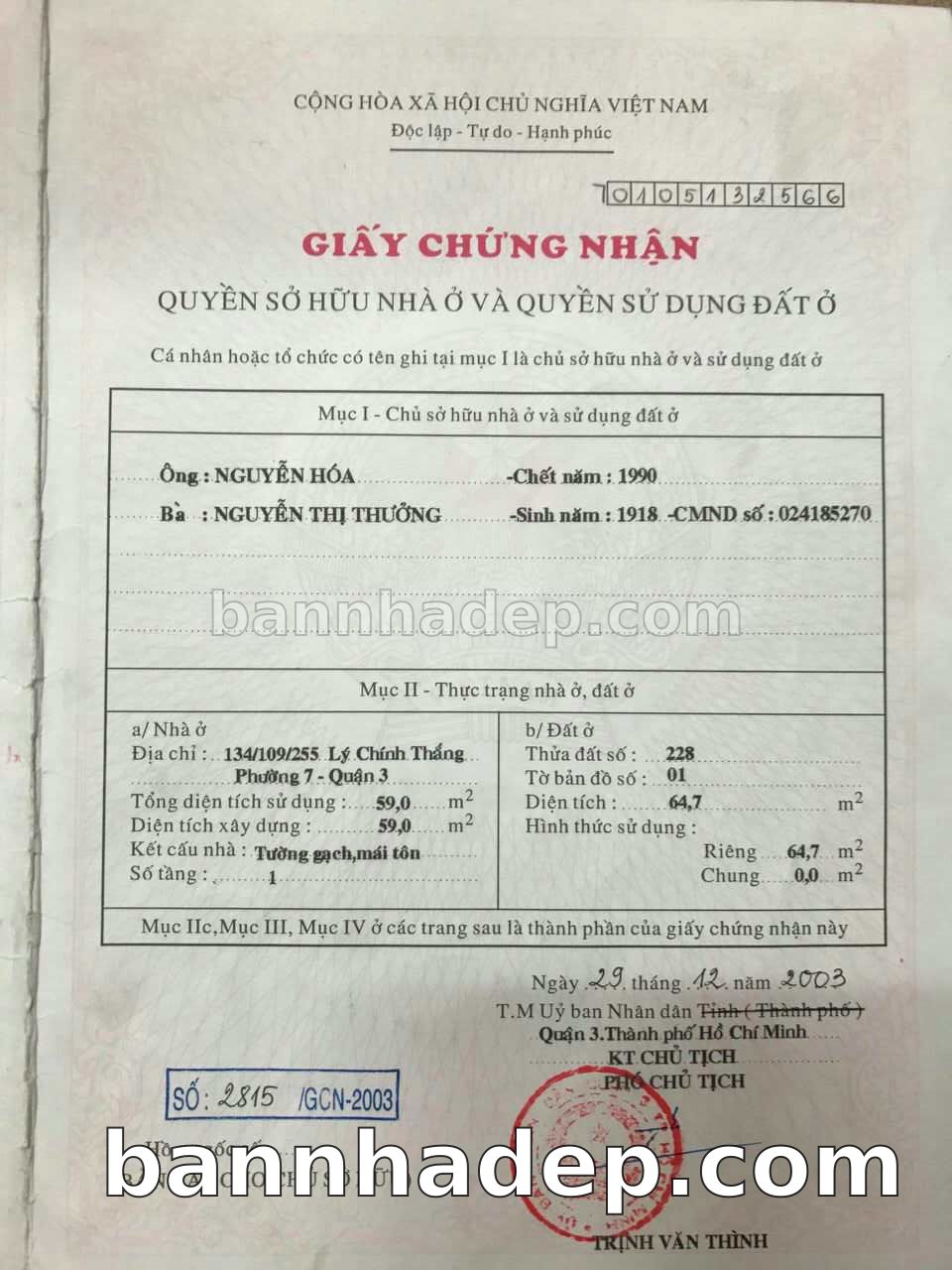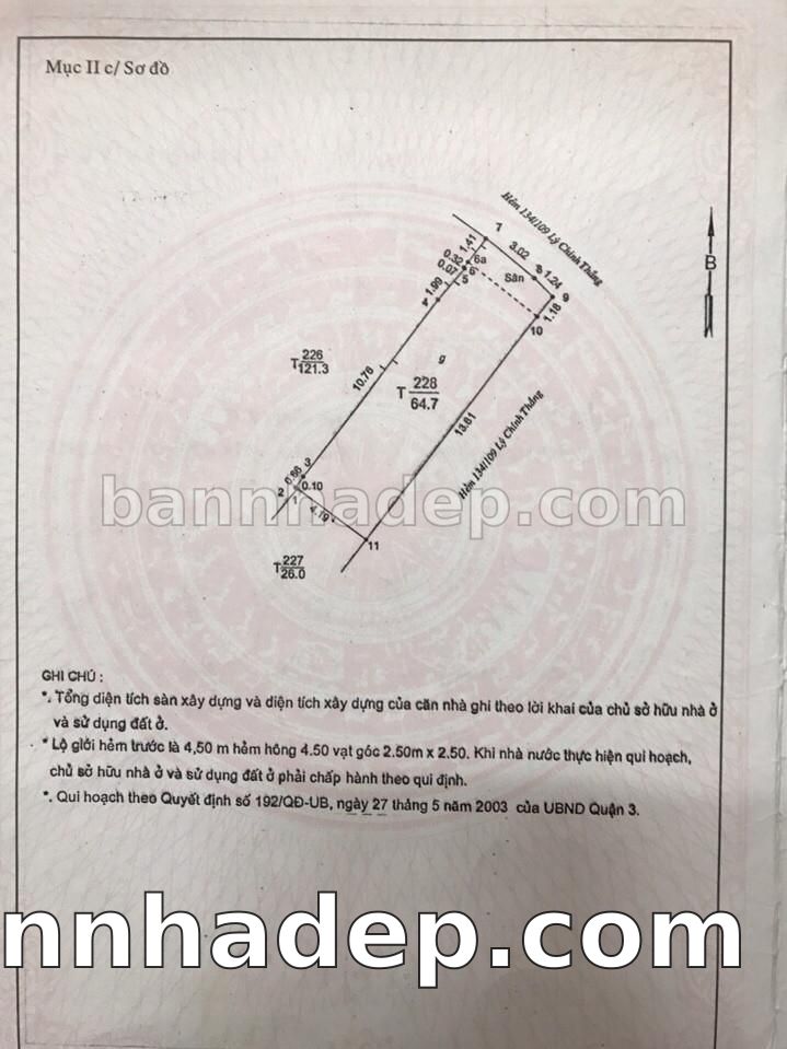Bán nhà 50 Trương Định phường 07 quận 3