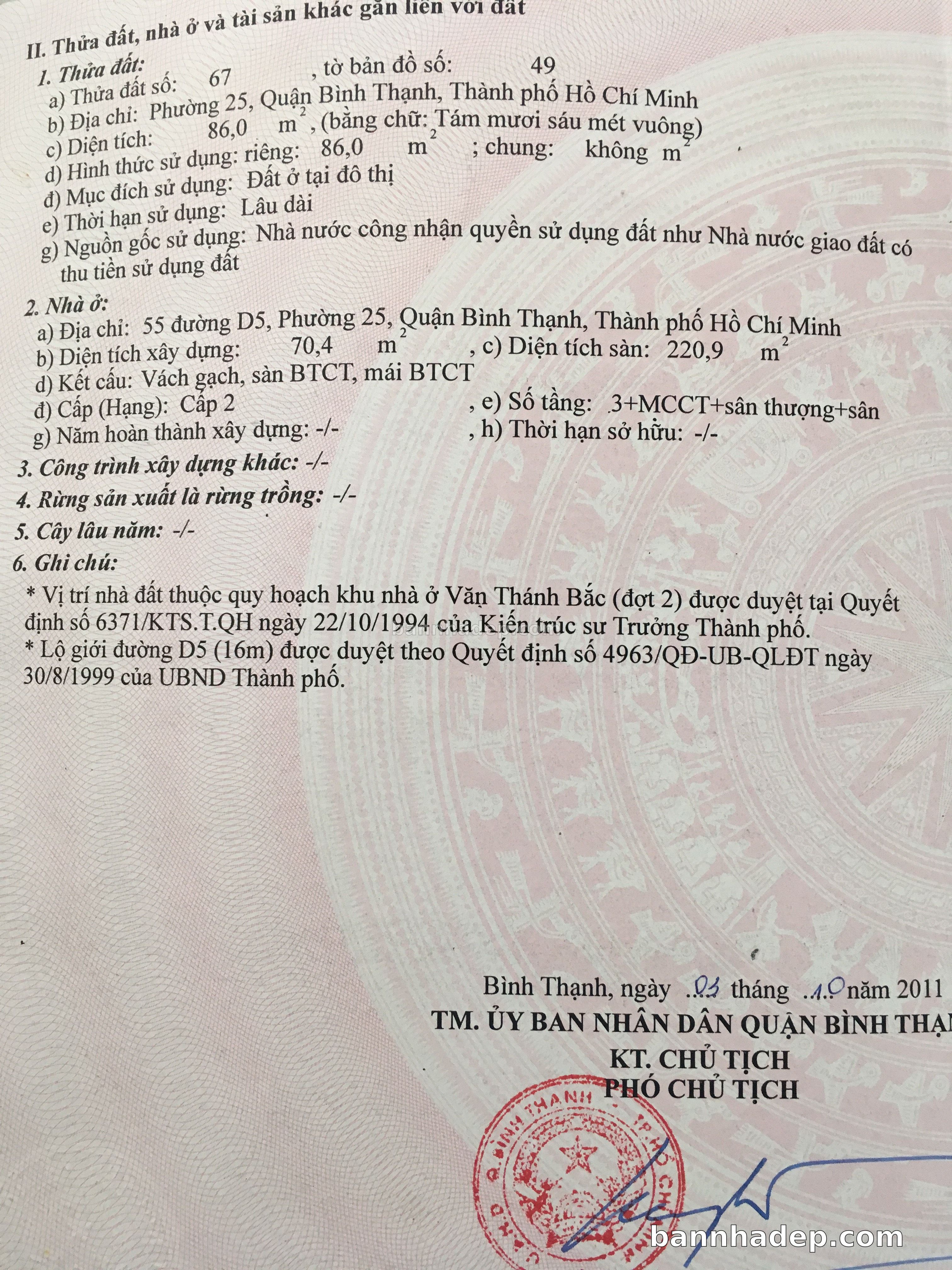 Bán nhà 55 đường D5 phường 02 quận Bình Thạnh