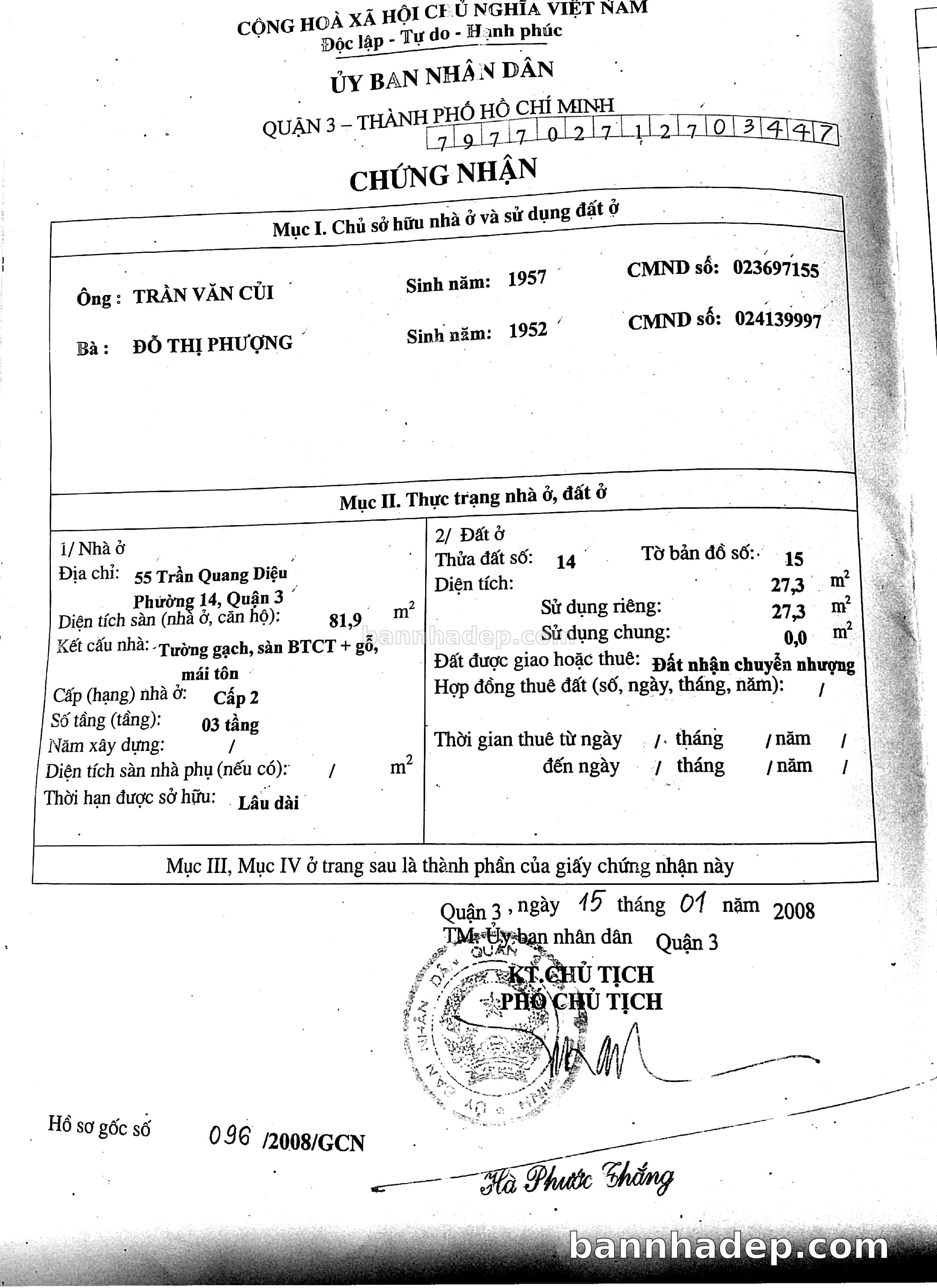 Bán nhà 55 Trần Quang Diệu phường 01 quận 3