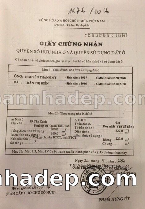 Bán nhà 22 Trương Công Đình phường 01 quận Tân Bình