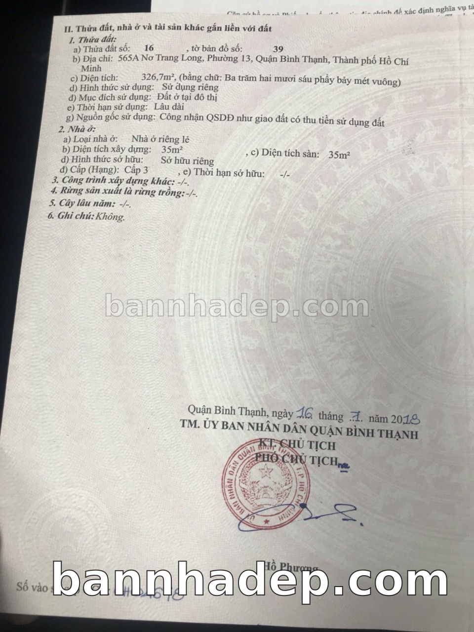 BÁN NHÀ Mặt tiền Số 565A Nơ Trang Long phường 01 quận Bình Thạnh TP. Hồ Chí Minh – GẦN CÔNG VIÊN GIẢI TRÍ – GIÁ TỐT Cần bán gấp nhà Mặt tiền tại Số 565A Nơ Trang Long phường 01 quận Bình Thạnh TP. Hồ Chí Minh – tiềm năng kinh doanh cao. Thông tin chi tiết: • Địa chỉ: Số 565A Nơ Trang Long phường 01 quận Bình Thạnh TP. Hồ Chí Minh • Diện tích: như trong sổ, không gian lý tưởng • Vị trí: Mặt tiền đường Nơ Trang Long, gần trung tâm thương mại lớn, khu vực sầm uất, tiềm năng kinh doanh cao • Pháp lý: Sổ hồng riêng, không tranh chấp, sẵn sàng giao dịch • Giá bán: Thoả Thuận (còn thương lượng với khách thiện chí) Lợi thế đặc biệt: • Vị trí trung tâm Quận Bình Thạnh • Giao thông thuận tiện, kết nối các quận trung tâm • Phù hợp kinh doanh dài hạn, ổn định • Khu vực sầm uất, tiềm năng kinh doanh tốt