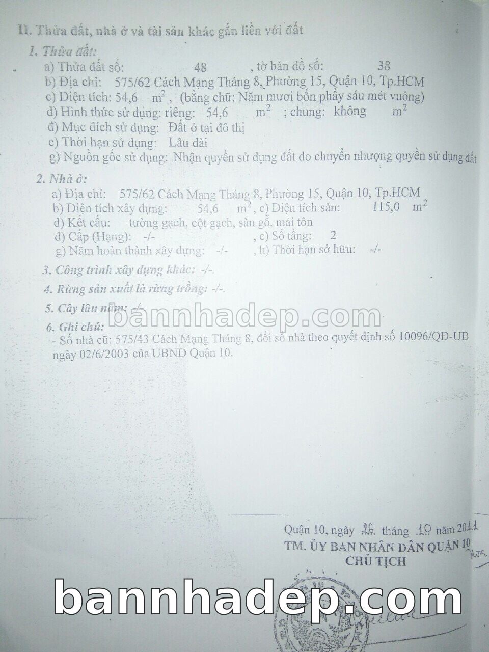 BÁN NHÀ Đường hẻm Số 575/62 Cách Mạng Tháng 8 phường 01 quận 10 TP. Hồ Chí Minh – GẦN CÔNG VIÊN GIẢI TRÍ – GIÁ TỐT Cần bán gấp nhà Đường hẻm tại Số 575/62 Cách Mạng Tháng 8 phường 01 quận 10 TP. Hồ Chí Minh – tiềm năng kinh doanh cao. Thông tin chi tiết: • Địa chỉ: Số 575/62 Cách Mạng Tháng 8 phường 01 quận 10 TP. Hồ Chí Minh • Diện tích: như trong sổ, không gian lý tưởng • Vị trí: Đường hẻm đường Cách Mạng Tháng 8, gần trung tâm thương mại lớn, khu vực sầm uất, tiềm năng kinh doanh cao • Pháp lý: Sổ hồng riêng, không tranh chấp, sẵn sàng giao dịch • Giá bán: Thoả Thuận (còn thương lượng với khách thiện chí) Lợi thế đặc biệt: • Vị trí trung tâm Quận 10 • Giao thông thuận tiện, kết nối các quận trung tâm • Phù hợp kinh doanh dài hạn, ổn định • Khu vực sầm uất, tiềm năng kinh doanh tốt