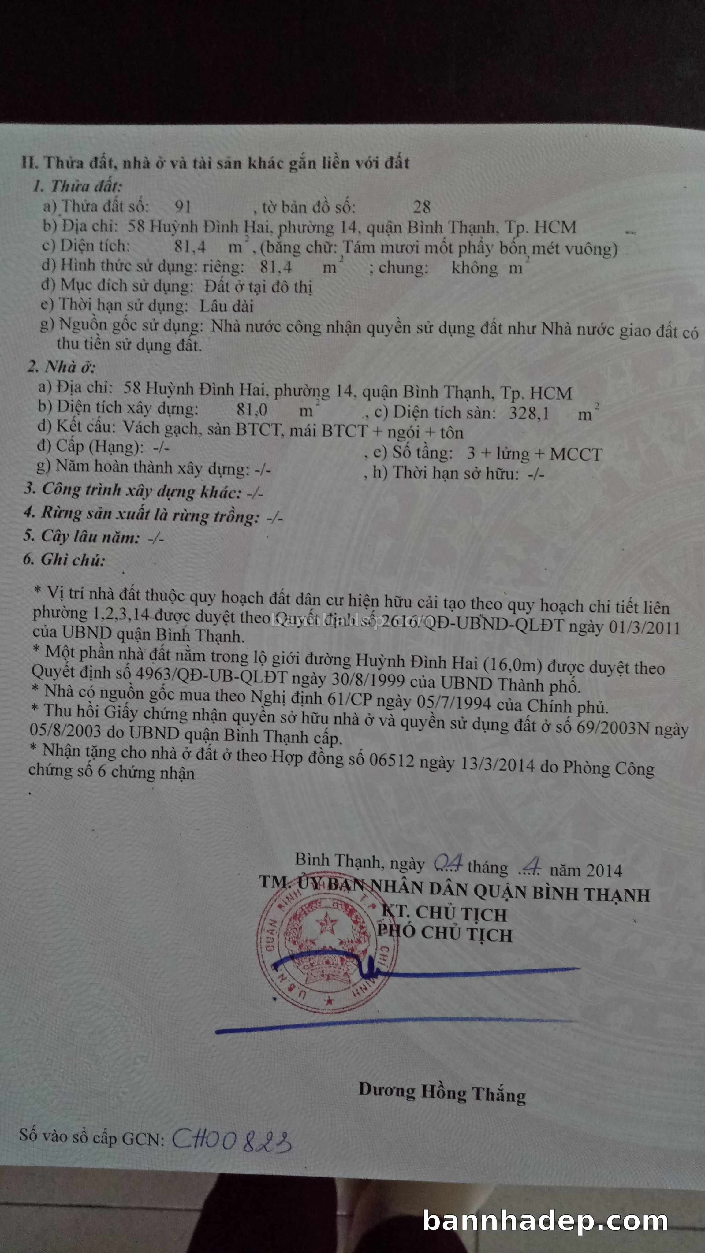 BÁN NHÀ Mặt tiền Số 58 Huỳnh Đình Hai phường 01 quận Bình Thạnh TP. Hồ Chí Minh – GẦN CÔNG VIÊN GIẢI TRÍ – GIÁ TỐT Cần bán gấp nhà Mặt tiền tại Số 58 Huỳnh Đình Hai phường 01 quận Bình Thạnh TP. Hồ Chí Minh – tiềm năng kinh doanh cao. Thông tin chi tiết: • Địa chỉ: Số 58 Huỳnh Đình Hai phường 01 quận Bình Thạnh TP. Hồ Chí Minh • Diện tích: như trong sổ, không gian lý tưởng • Vị trí: Mặt tiền đường Huỳnh Đình Hai, gần trung tâm thương mại lớn, khu vực sầm uất, tiềm năng kinh doanh cao • Pháp lý: Sổ hồng riêng, không tranh chấp, sẵn sàng giao dịch • Giá bán: Thoả Thuận (còn thương lượng với khách thiện chí) Lợi thế đặc biệt: • Vị trí trung tâm Quận Bình Thạnh • Giao thông thuận tiện, kết nối các quận trung tâm • Phù hợp kinh doanh dài hạn, ổn định • Khu vực sầm uất, tiềm năng kinh doanh tốt