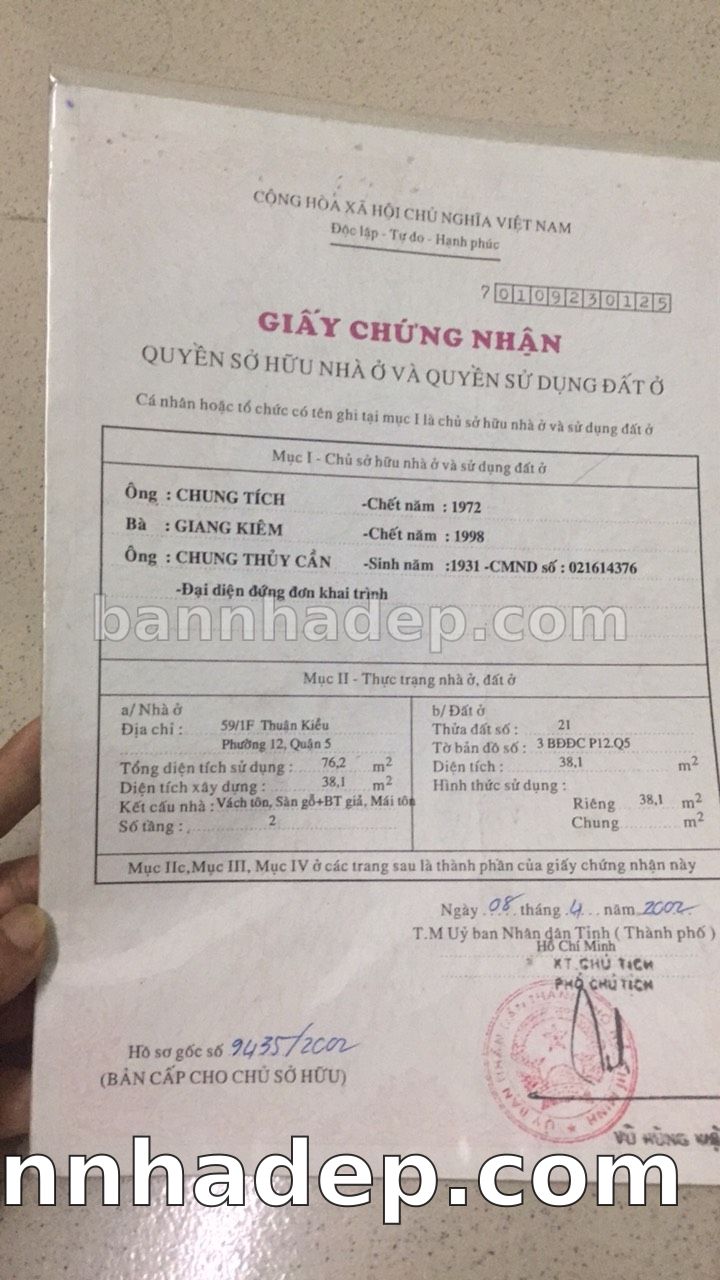 Bán nhà 59/1F Thuận Kiều phường 01 quận 5