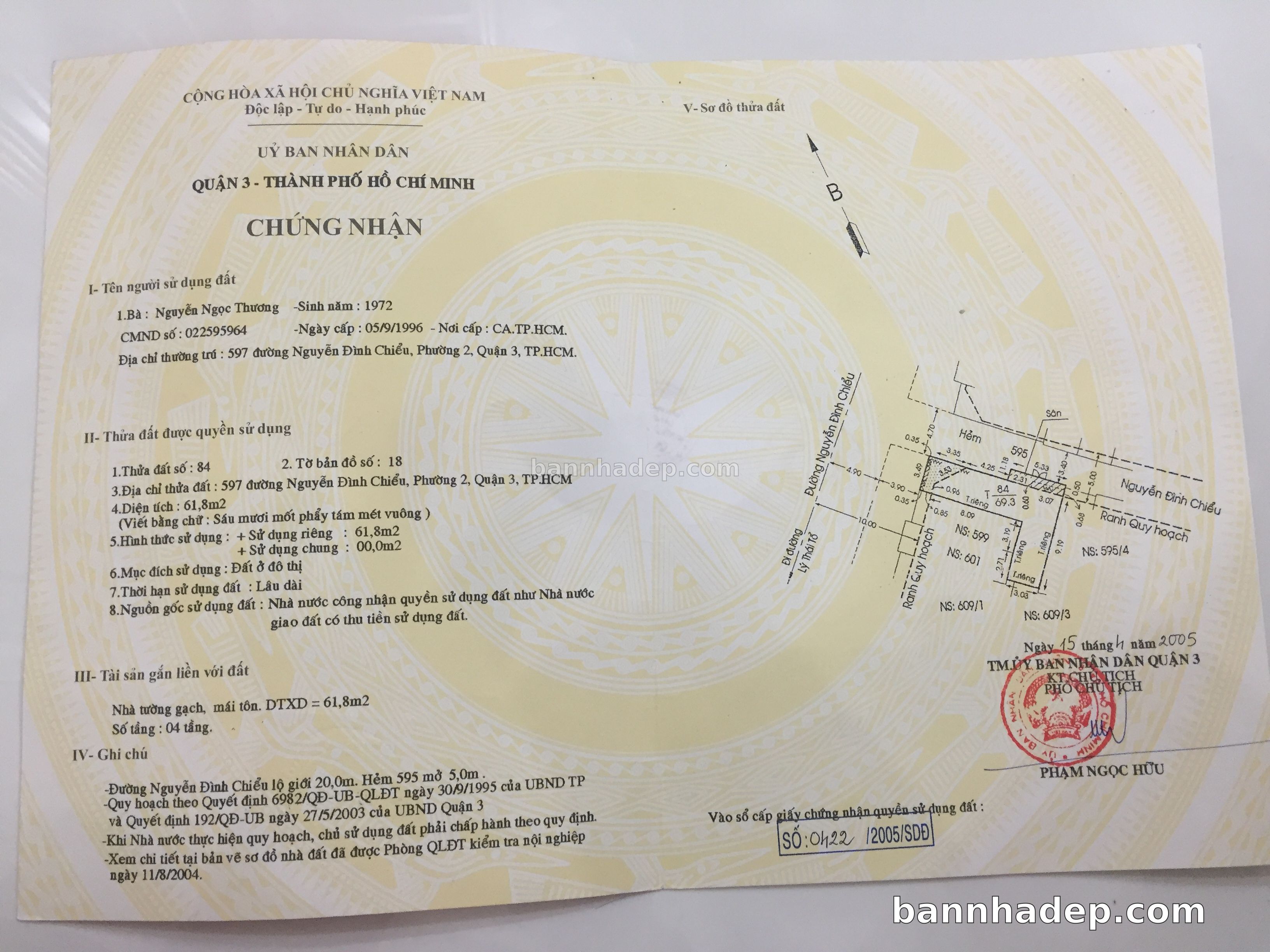 BÁN NHÀ Mặt tiền Số 597 Nguyễn Đình Chiểu phường 02 quận 3 TP. Hồ Chí Minh – GẦN CÔNG VIÊN GIẢI TRÍ – GIÁ TỐT Cần bán gấp nhà Mặt tiền tại Số 597 Nguyễn Đình Chiểu phường 02 quận 3 TP. Hồ Chí Minh – tiềm năng kinh doanh cao. Thông tin chi tiết: • Địa chỉ: Số 597 Nguyễn Đình Chiểu phường 02 quận 3 TP. Hồ Chí Minh • Diện tích: như trong sổ, không gian lý tưởng • Vị trí: Mặt tiền đường Nguyễn Đình Chiểu, gần trung tâm thương mại lớn, khu vực sầm uất, tiềm năng kinh doanh cao • Pháp lý: Sổ hồng riêng, không tranh chấp, sẵn sàng giao dịch • Giá bán: Thoả Thuận (còn thương lượng với khách thiện chí) Lợi thế đặc biệt: • Vị trí trung tâm Quận 3 • Giao thông thuận tiện, kết nối các quận trung tâm • Phù hợp kinh doanh dài hạn, ổn định • Khu vực sầm uất, tiềm năng kinh doanh tốt