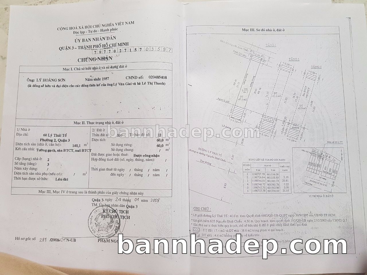 BÁN NHÀ Mặt tiền Số 60 Lý Thái Tổ phường 02 quận 3 TP. Hồ Chí Minh – GẦN CÔNG VIÊN GIẢI TRÍ – GIÁ TỐT Cần bán gấp nhà Mặt tiền tại Số 60 Lý Thái Tổ phường 02 quận 3 TP. Hồ Chí Minh – tiềm năng kinh doanh cao. Thông tin chi tiết: • Địa chỉ: Số 60 Lý Thái Tổ phường 02 quận 3 TP. Hồ Chí Minh • Diện tích: như trong sổ, không gian lý tưởng • Vị trí: Mặt tiền đường Lý Thái Tổ, gần trung tâm thương mại lớn, khu vực sầm uất, tiềm năng kinh doanh cao • Pháp lý: Sổ hồng riêng, không tranh chấp, sẵn sàng giao dịch • Giá bán: Thoả Thuận (còn thương lượng với khách thiện chí) Lợi thế đặc biệt: • Vị trí trung tâm Quận 3 • Giao thông thuận tiện, kết nối các quận trung tâm • Phù hợp kinh doanh dài hạn, ổn định • Khu vực sầm uất, tiềm năng kinh doanh tốt