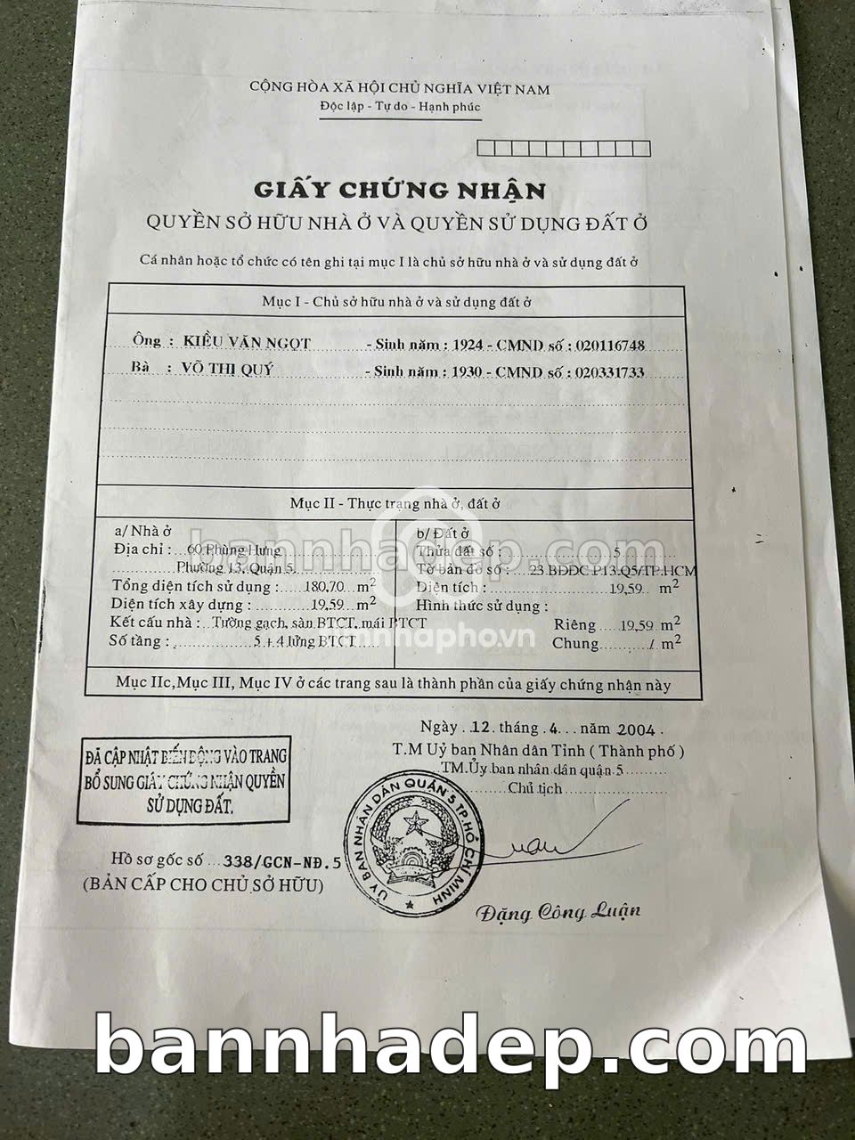 BÁN NHÀ MẶT TIỀN Số 60 Phùng Hưng Phường 13 Quận 5 TP. Hồ Chí Minh – GẦN TRUNG TÂM THƯƠNG MẠI – GIÁ TỐT 14,5 TỶ Bán nhà mặt tiền tại Số 60 Phùng Hưng Phường 13 Quận 5 TP. Hồ Chí Minh – vị trí đắc địa. Thông tin chi tiết: • Địa chỉ: Số 60 Phùng Hưng Phường 13 Quận 5 TP. Hồ Chí Minh • Diện tích: 6.0m x 6.0m, không gian lý tưởng • Vị trí: Mặt tiền đường Phùng Hưng, đối diện trường học, khu vực sầm uất, tiềm năng kinh doanh cao • Pháp lý: Sổ hồng riêng, thổ cư 100%, sẵn sàng sang tên • Giá bán: 14,5 Tỷ (giá tốt, có thể thương lượng) Ưu thế vượt trội: • Mặt tiền rộng, giá trị khai thác thương mại cao • Vị trí đắc địa, tiềm năng sinh lời cao • Phù hợp kinh doanh đa dạng ngành nghề • Giao thông thuận tiện, kết nối các quận trung tâm