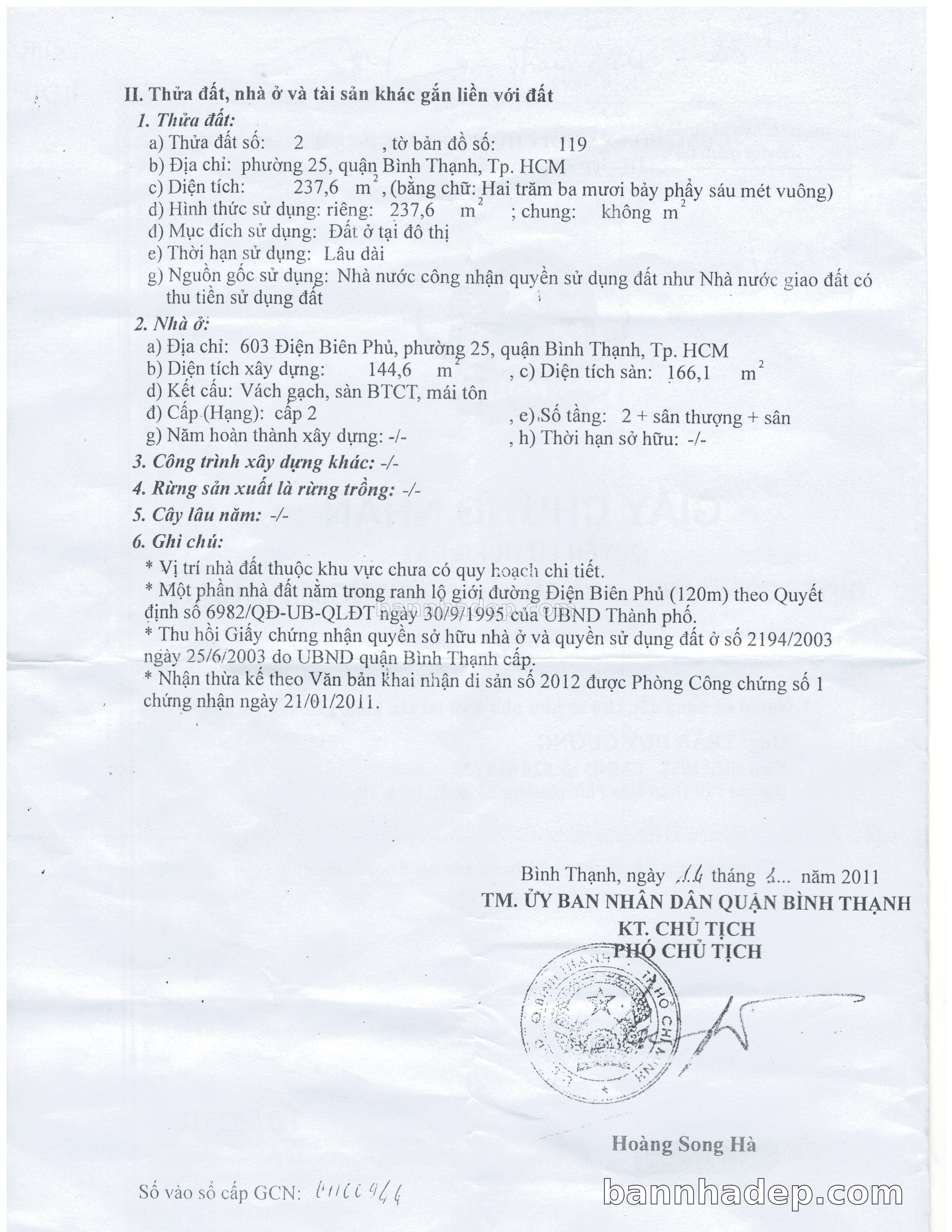 BÁN NHÀ Mặt tiền Số 603 Điện Biên Phủ phường 02 quận Bình Thạnh TP. Hồ Chí Minh – GẦN CÔNG VIÊN GIẢI TRÍ – GIÁ TỐT Cần bán gấp nhà Mặt tiền tại Số 603 Điện Biên Phủ phường 02 quận Bình Thạnh TP. Hồ Chí Minh – tiềm năng kinh doanh cao. Thông tin chi tiết: • Địa chỉ: Số 603 Điện Biên Phủ phường 02 quận Bình Thạnh TP. Hồ Chí Minh • Diện tích: như trong sổ, không gian lý tưởng • Vị trí: Mặt tiền đường Điện Biên Phủ, gần trung tâm thương mại lớn, khu vực sầm uất, tiềm năng kinh doanh cao • Pháp lý: Sổ hồng riêng, không tranh chấp, sẵn sàng giao dịch • Giá bán: Thoả Thuận (còn thương lượng với khách thiện chí) Lợi thế đặc biệt: • Vị trí trung tâm Quận Bình Thạnh • Giao thông thuận tiện, kết nối các quận trung tâm • Phù hợp kinh doanh dài hạn, ổn định • Khu vực sầm uất, tiềm năng kinh doanh tốt