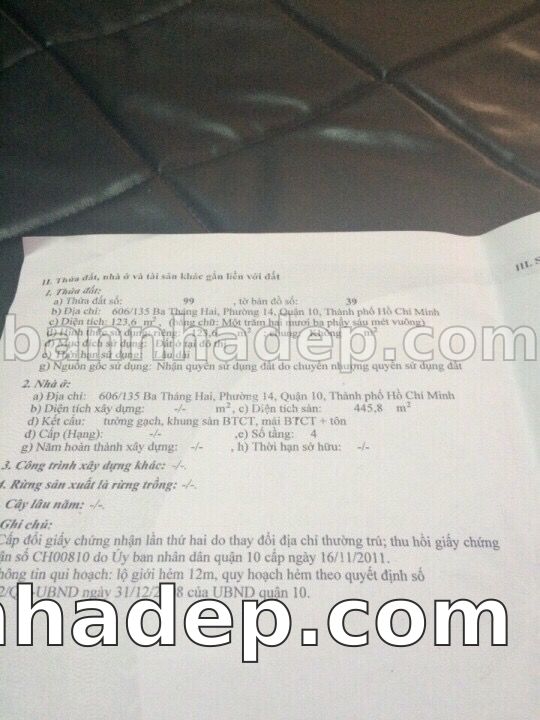 Bán nhà 606/135 Ba Tháng Hai phường 01 quận 10