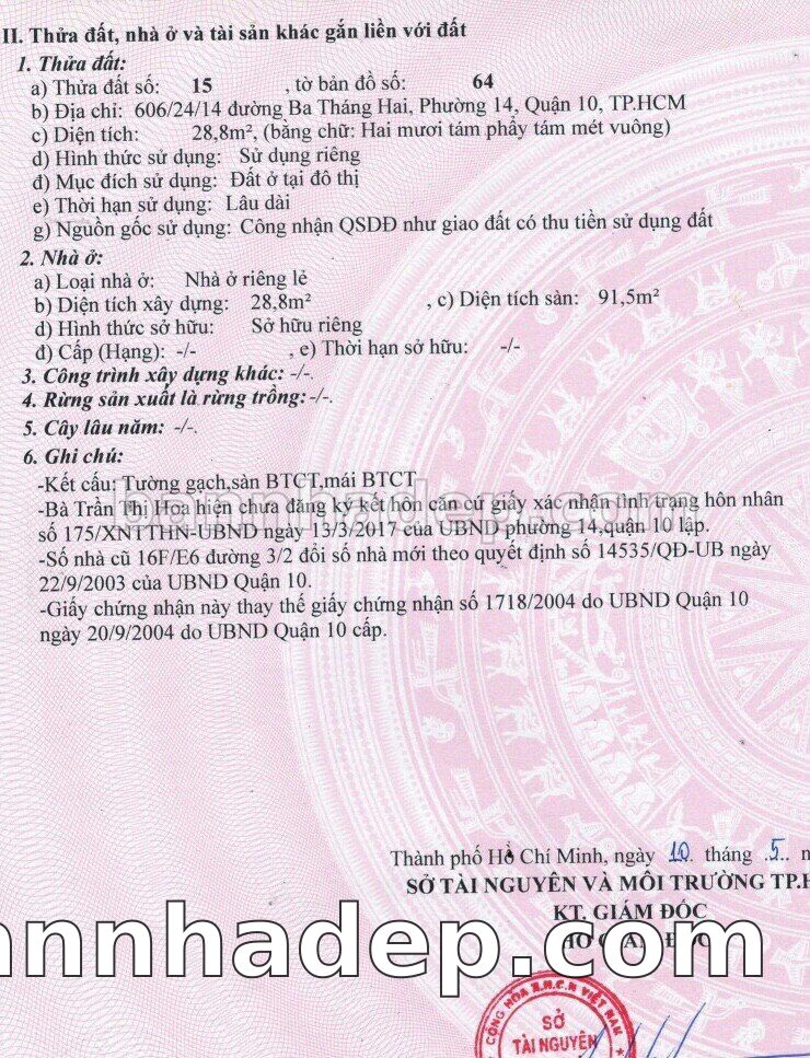 Địa chỉ: 606/24/14 Ba Tháng Hai phường 01 quận 10