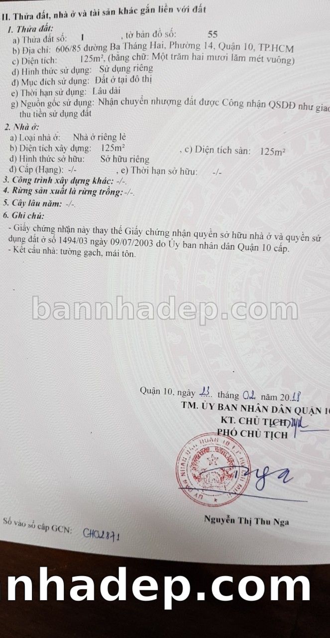 BÁN NHÀ Đường hẻm Số 606/85 Đường 3 tháng 2 phường 01 quận 10 TP. Hồ Chí Minh – GẦN CÔNG VIÊN GIẢI TRÍ – GIÁ TỐT Cần bán gấp nhà Đường hẻm tại Số 606/85 Đường 3 tháng 2 phường 01 quận 10 TP. Hồ Chí Minh – tiềm năng kinh doanh cao. Thông tin chi tiết: • Địa chỉ: Số 606/85 Đường 3 tháng 2 phường 01 quận 10 TP. Hồ Chí Minh • Diện tích: như trong sổ, không gian lý tưởng • Vị trí: Đường hẻm đường Đường 3 tháng 2, gần trung tâm thương mại lớn, khu vực sầm uất, tiềm năng kinh doanh cao • Pháp lý: Sổ hồng riêng, không tranh chấp, sẵn sàng giao dịch • Giá bán: Thoả Thuận (còn thương lượng với khách thiện chí) Lợi thế đặc biệt: • Vị trí trung tâm Quận 10 • Giao thông thuận tiện, kết nối các quận trung tâm • Phù hợp kinh doanh dài hạn, ổn định • Khu vực sầm uất, tiềm năng kinh doanh tốt