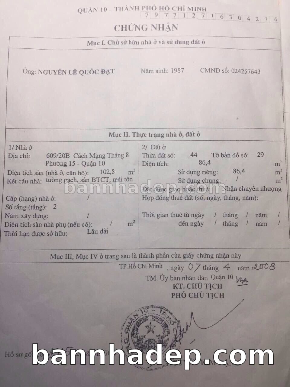Bán nhà 79CT Tam Đảo phường 01 quận 10