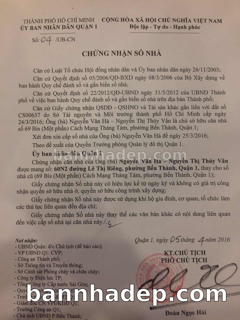 Địa chỉ: 60N2 Lê Thị Riêng phường Bến Thành quận 1