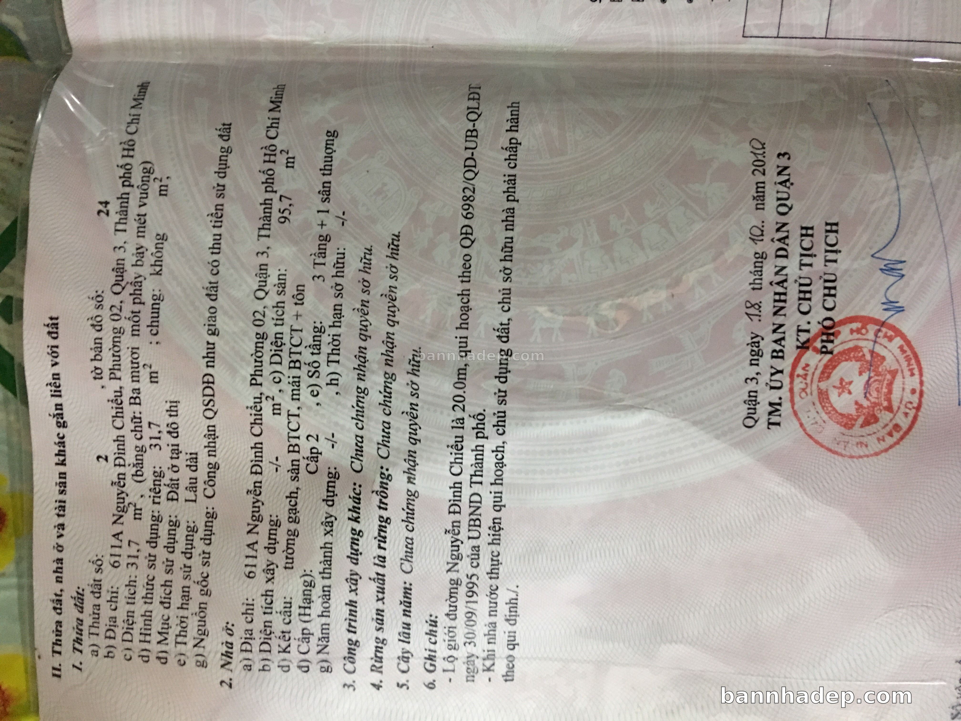 BÁN NHÀ Mặt tiền Số 611A Nguyễn Đình Chiểu phường 02 quận 3 TP. Hồ Chí Minh – GẦN CÔNG VIÊN GIẢI TRÍ – GIÁ TỐT Cần bán gấp nhà Mặt tiền tại Số 611A Nguyễn Đình Chiểu phường 02 quận 3 TP. Hồ Chí Minh – tiềm năng kinh doanh cao. Thông tin chi tiết: • Địa chỉ: Số 611A Nguyễn Đình Chiểu phường 02 quận 3 TP. Hồ Chí Minh • Diện tích: như trong sổ, không gian lý tưởng • Vị trí: Mặt tiền đường Nguyễn Đình Chiểu, gần trung tâm thương mại lớn, khu vực sầm uất, tiềm năng kinh doanh cao • Pháp lý: Sổ hồng riêng, không tranh chấp, sẵn sàng giao dịch • Giá bán: Thoả Thuận (còn thương lượng với khách thiện chí) Lợi thế đặc biệt: • Vị trí trung tâm Quận 3 • Giao thông thuận tiện, kết nối các quận trung tâm • Phù hợp kinh doanh dài hạn, ổn định • Khu vực sầm uất, tiềm năng kinh doanh tốt