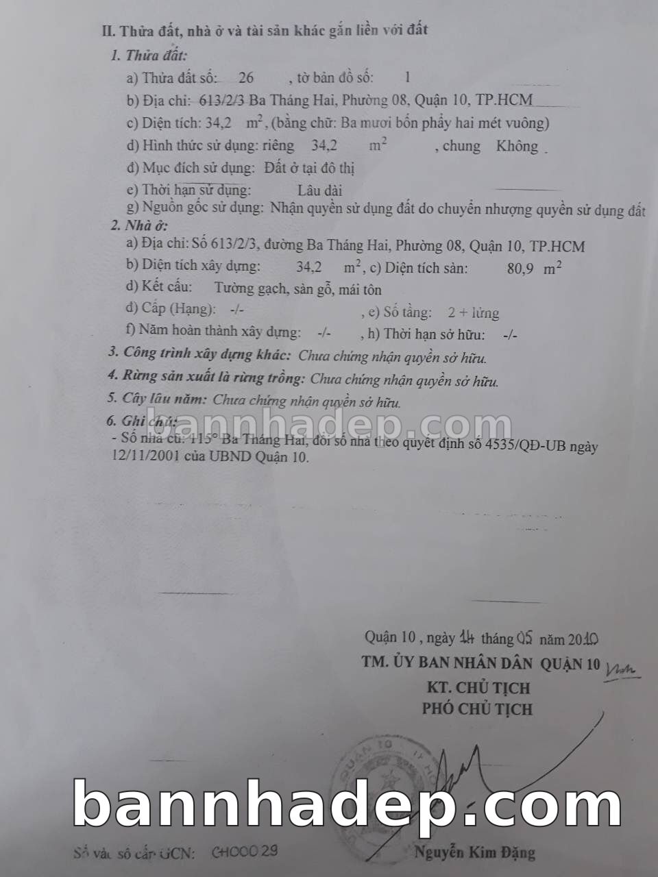 Bán nhà 613/2/3 Ba Tháng Hai phường 08 quận 10