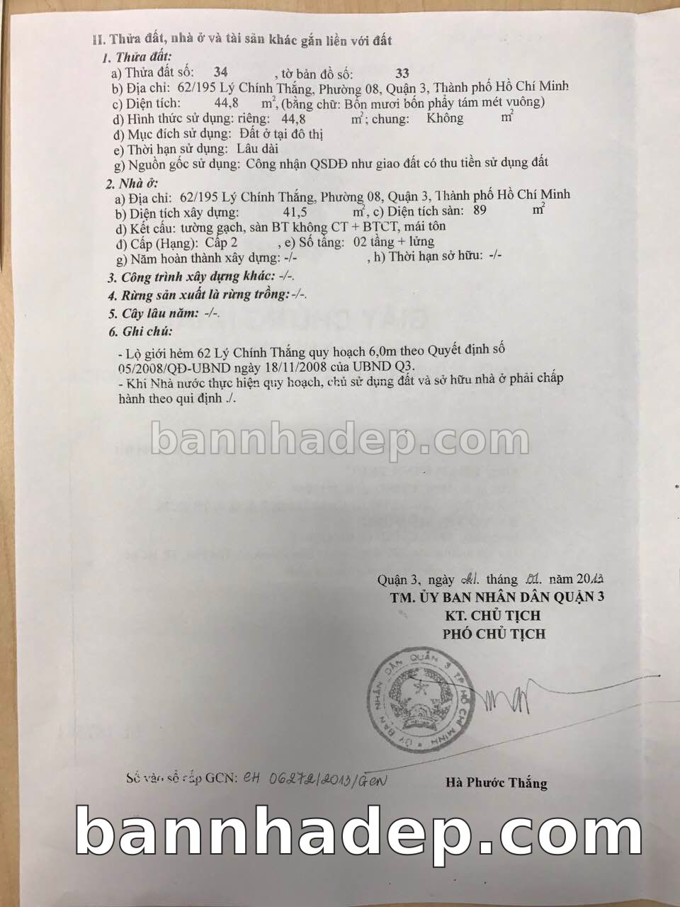 BÁN NHÀ Đường hẻm Số 62/195 Lý Chính Thắng phường 08 quận 3 TP. Hồ Chí Minh – GẦN CÔNG VIÊN GIẢI TRÍ – GIÁ TỐT Cần bán gấp nhà Đường hẻm tại Số 62/195 Lý Chính Thắng phường 08 quận 3 TP. Hồ Chí Minh – tiềm năng kinh doanh cao. Thông tin chi tiết: • Địa chỉ: Số 62/195 Lý Chính Thắng phường 08 quận 3 TP. Hồ Chí Minh • Diện tích: như trong sổ, không gian lý tưởng • Vị trí: Đường hẻm đường Lý Chính Thắng, gần trung tâm thương mại lớn, khu vực sầm uất, tiềm năng kinh doanh cao • Pháp lý: Sổ hồng riêng, không tranh chấp, sẵn sàng giao dịch • Giá bán: Thoả Thuận (còn thương lượng với khách thiện chí) Lợi thế đặc biệt: • Vị trí trung tâm Quận 3 • Giao thông thuận tiện, kết nối các quận trung tâm • Phù hợp kinh doanh dài hạn, ổn định • Khu vực sầm uất, tiềm năng kinh doanh tốt